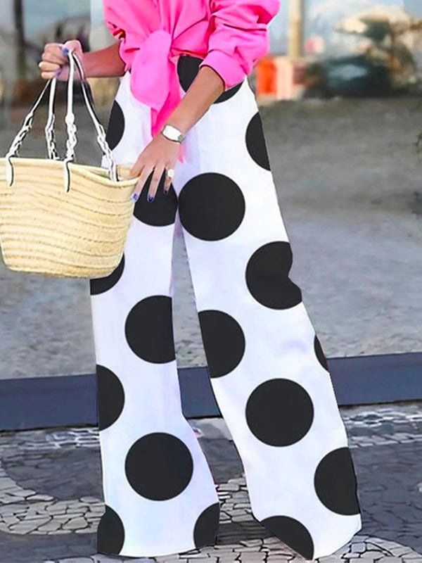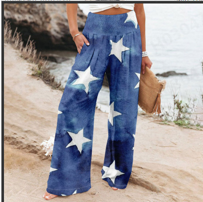 높은 허리 캐주얼 와이드 다리 바지 얇은 탄성 바지 국경 아마존 내부 여름 폭발 독립 역 디지털 인쇄