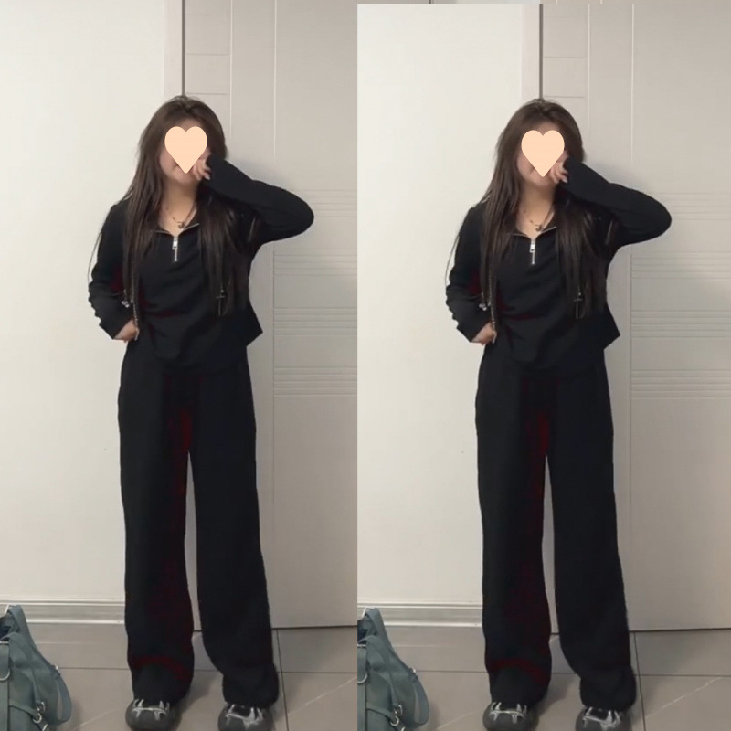 플러스 사이즈 통통한 가을 새로운 후드 니트 지퍼 스웨터 와이드 레그 바지 투피스 세트 틈새 디자인 세트 트렌디스토어 가기