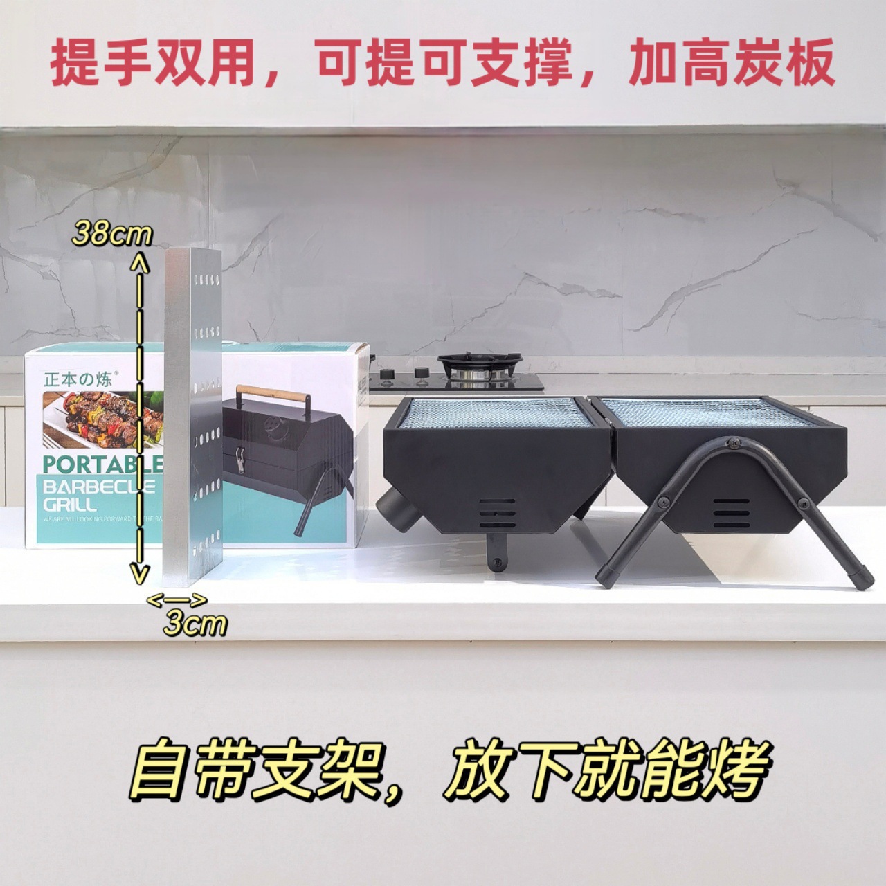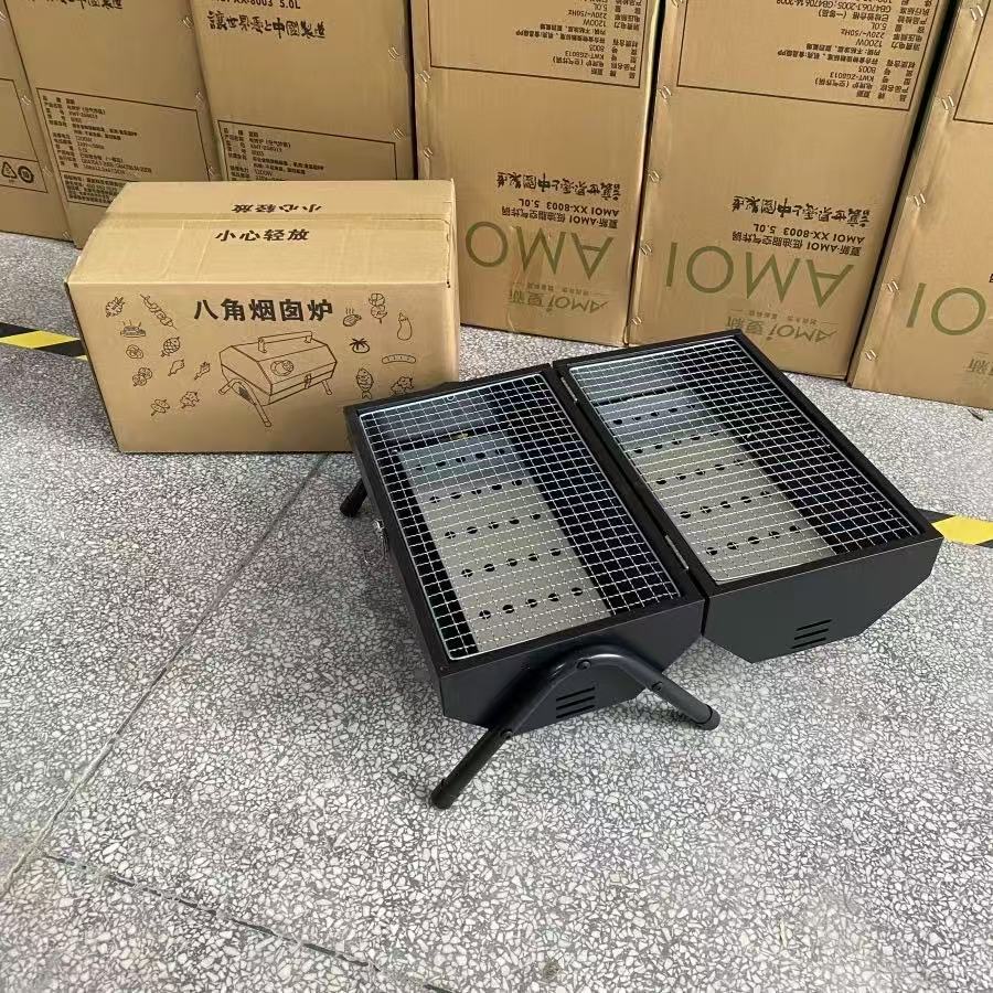 대외 무역 다기능 팔각형 굴뚝 오븐 야외 편리한 휴대용 오븐 탄소 그릴 가정용 휴대용 양면 바베큐 배치스토어 가기