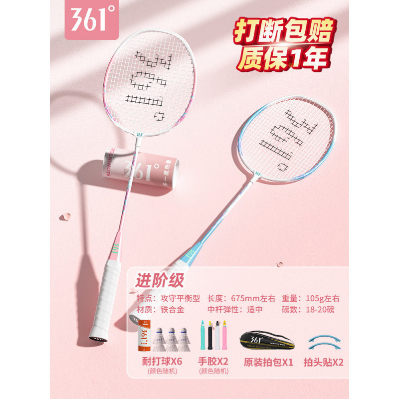 • 초보자 업그레이드》핑크/블루 철합금 더블 라켓 2개 + 내구성이 뛰어난 나일론 6구 세트 포함