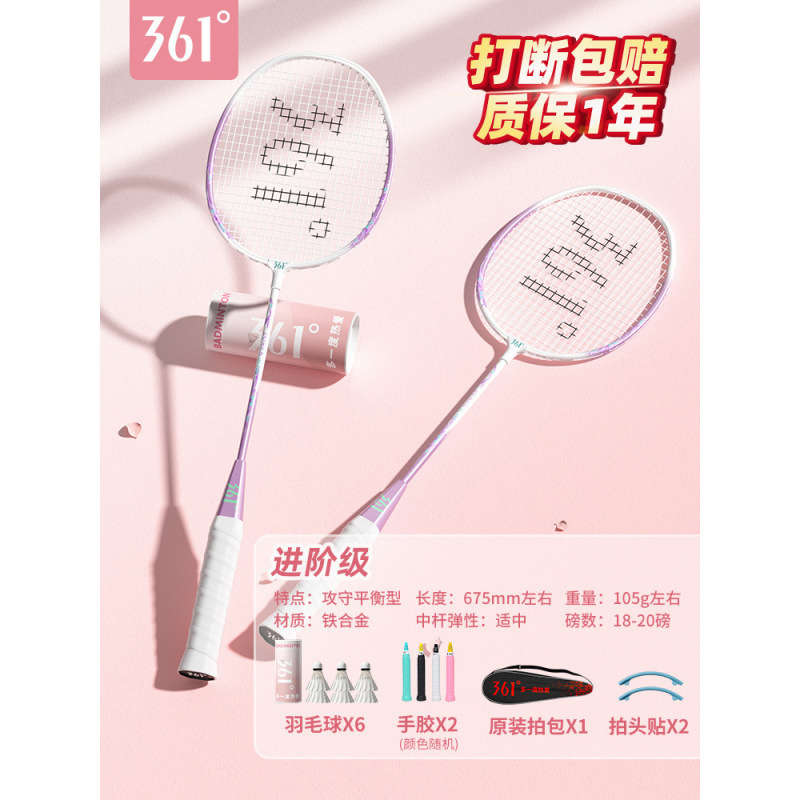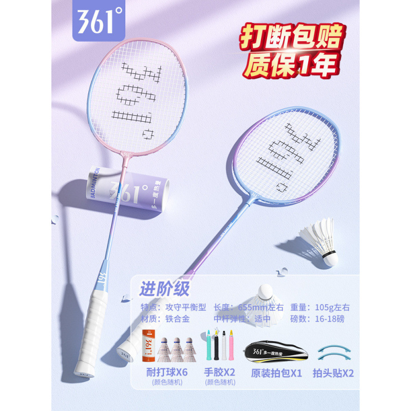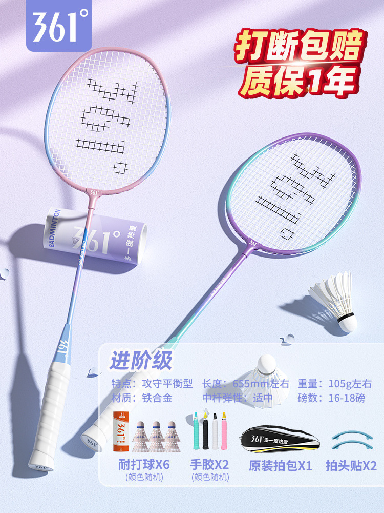 • 초보자를 위한 최고의 선택》보라색과 파란색 철합금 더블 라켓 2개 + 무료 오리지널 깃털 6구 세트-성