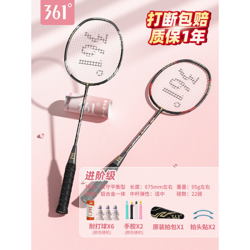 • 공격과 수비 모두》검정과 빨강/흑백 알루미늄 일체형 더블 라켓 2개 + 무료 오리지널 깃털 6구 세트