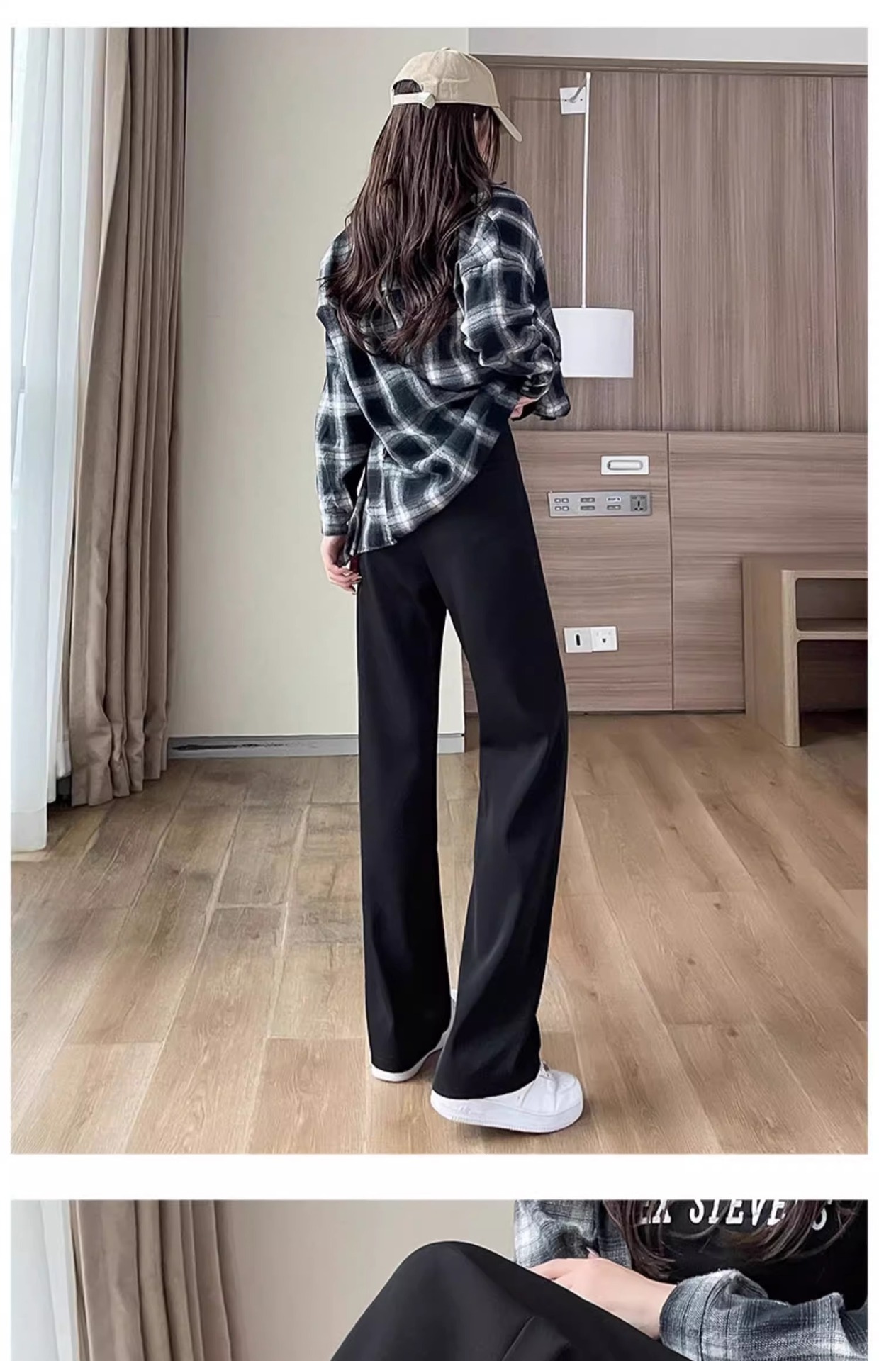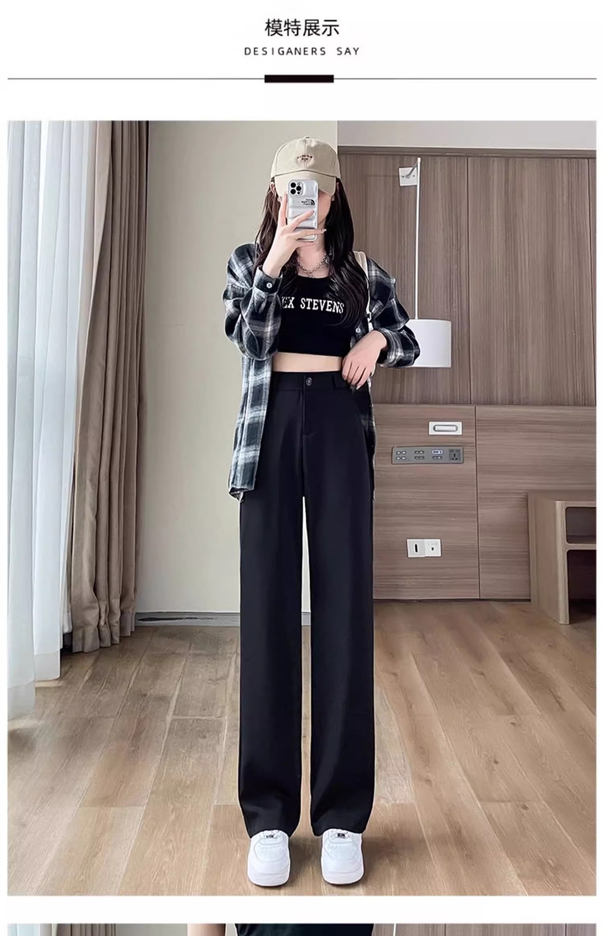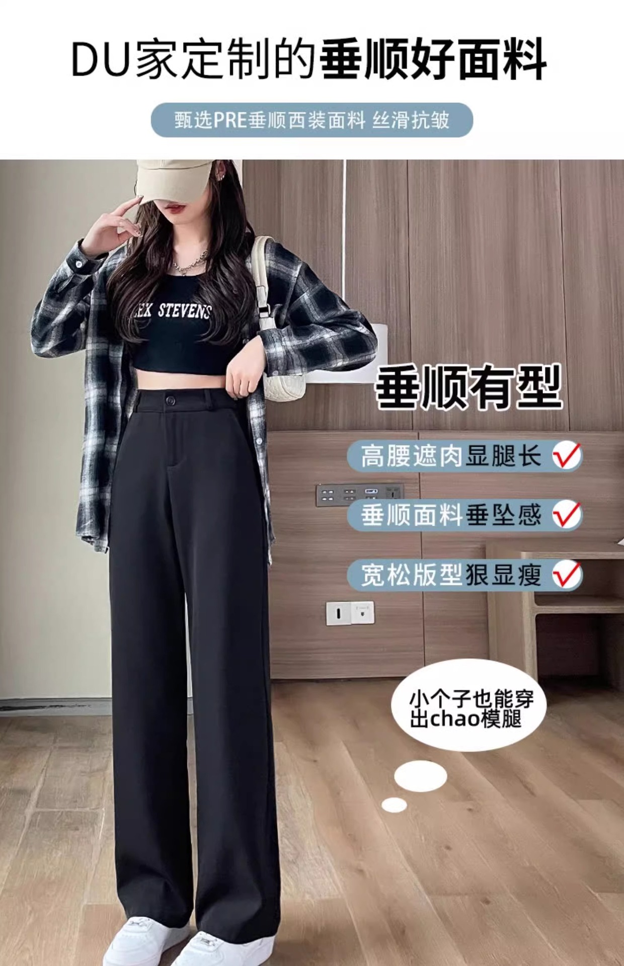 작은 세트 바지 여성의 가을과 겨울 2025 새로운 높은 허리 좁은 버전 드레이프 넓은 다리 바지 봄 검은 색 스트레이트 바지스토어 가기