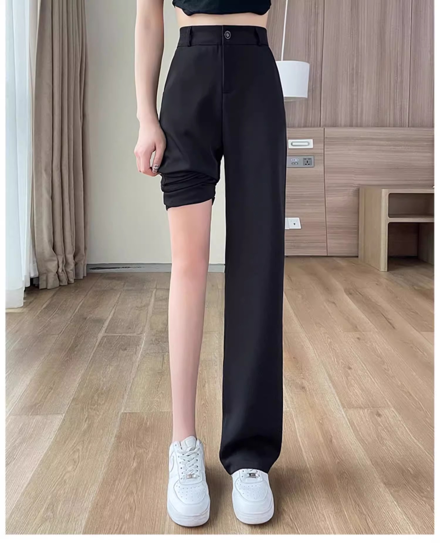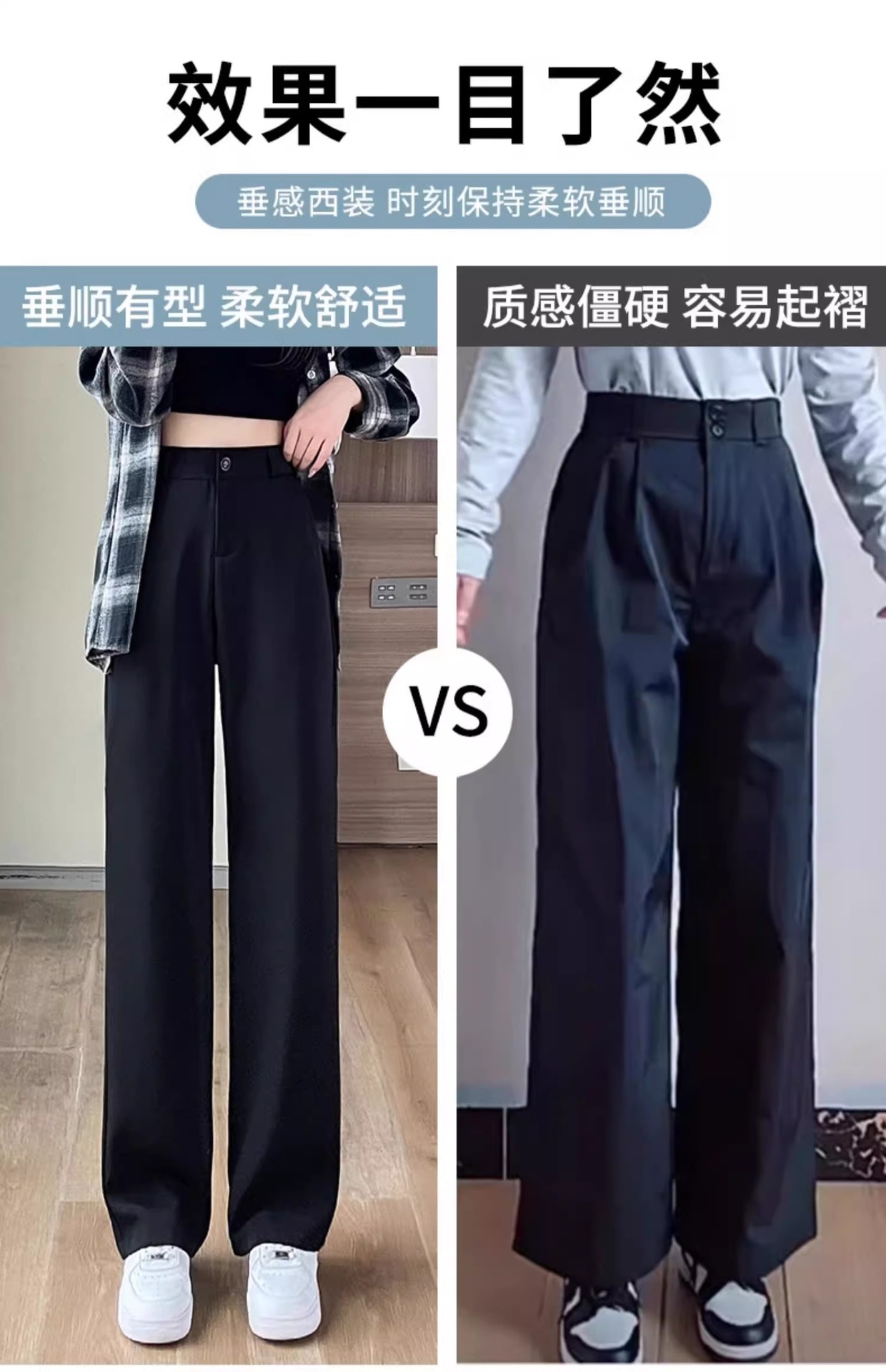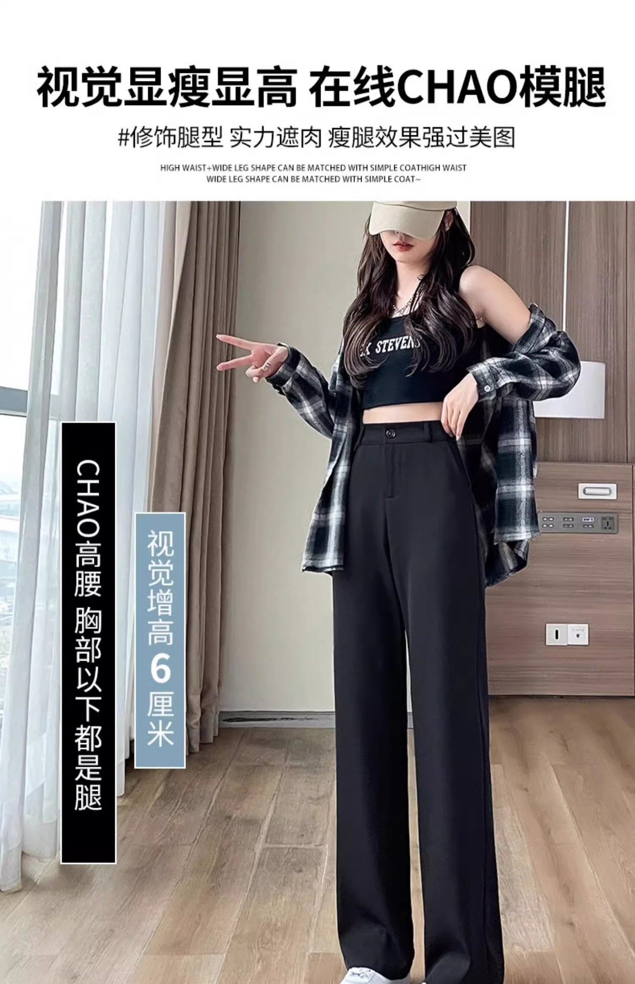 작은 세트 바지 여성의 가을과 겨울 2025 새로운 높은 허리 좁은 버전 드레이프 넓은 다리 바지 봄 검은 색 스트레이트 바지스토어 가기