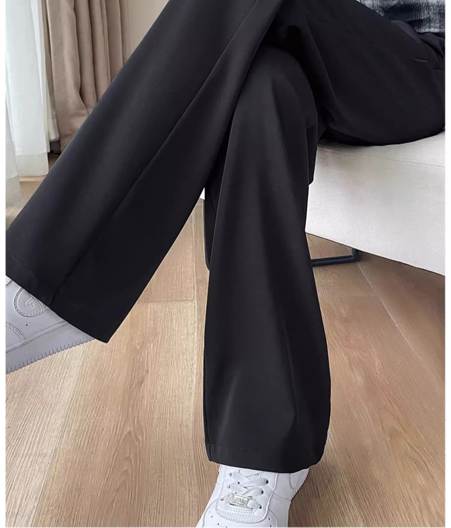 작은 세트 바지 여성의 가을과 겨울 2025 새로운 높은 허리 좁은 버전 드레이프 넓은 다리 바지 봄 검은 색 스트레이트 바지