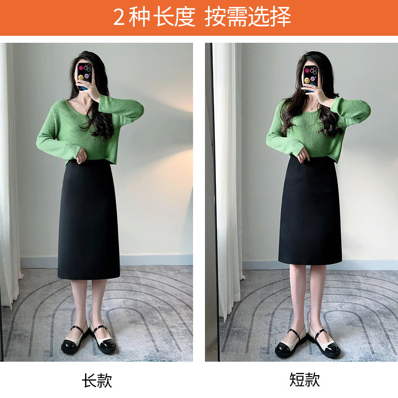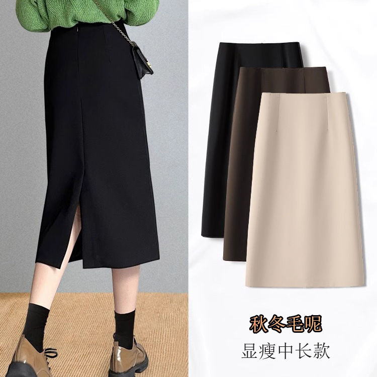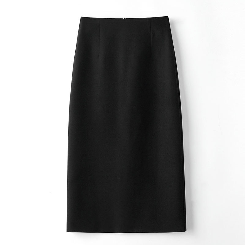 2025 새로운 봄과 여름 스커트 여성 가방 엉덩이 분할 스커트 작은 높은 허리 슬리밍 스트레이트 울 스커트