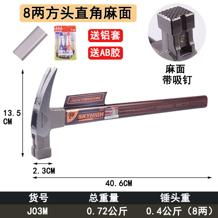 • J03M 사각 헤드(직각 마모 표면) 해머 헤드 0.4kg 알루미늄 슬리브 및 접착제 포함