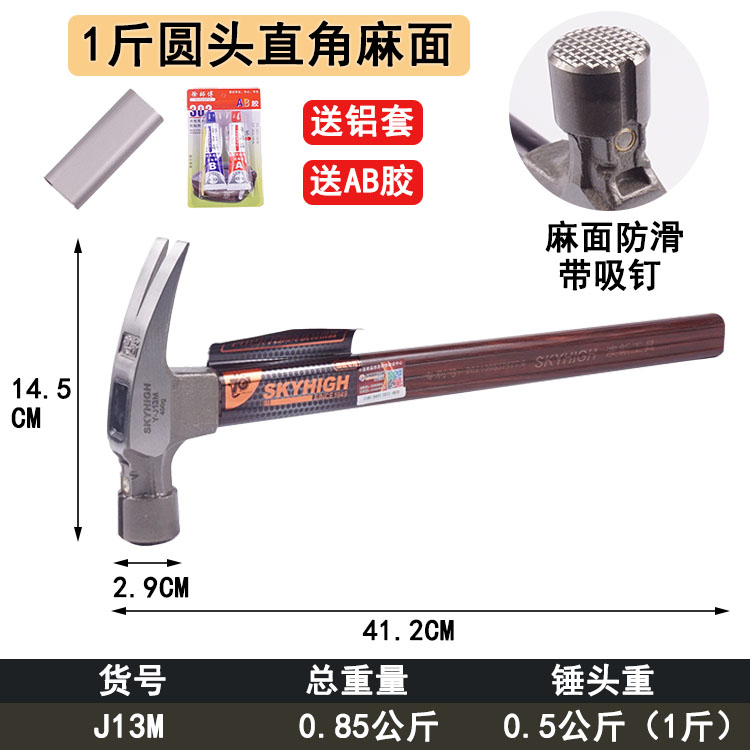 • J13M 둥근 머리(직각 움푹 들어간 부분) 해머 헤드 0.5kg 접착제 알루미늄 슬리브와 함께 제공