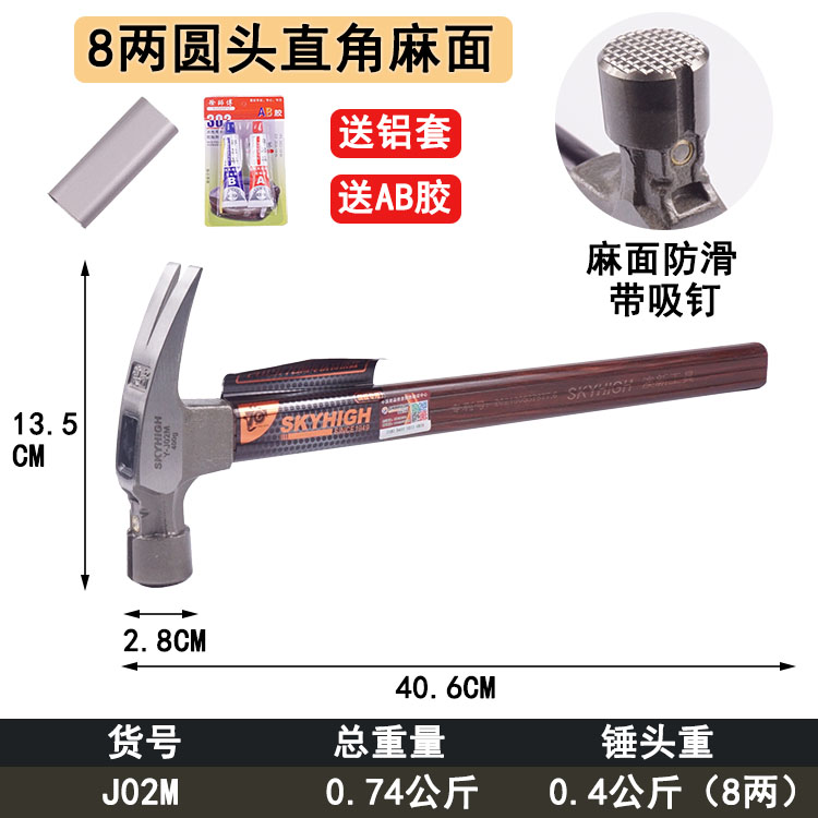 • J02P 유럽 스타일(직각 평면) 해머 헤드 0.4kg에는 알루미늄 슬리브 접착제가 함께 제공됩니다.