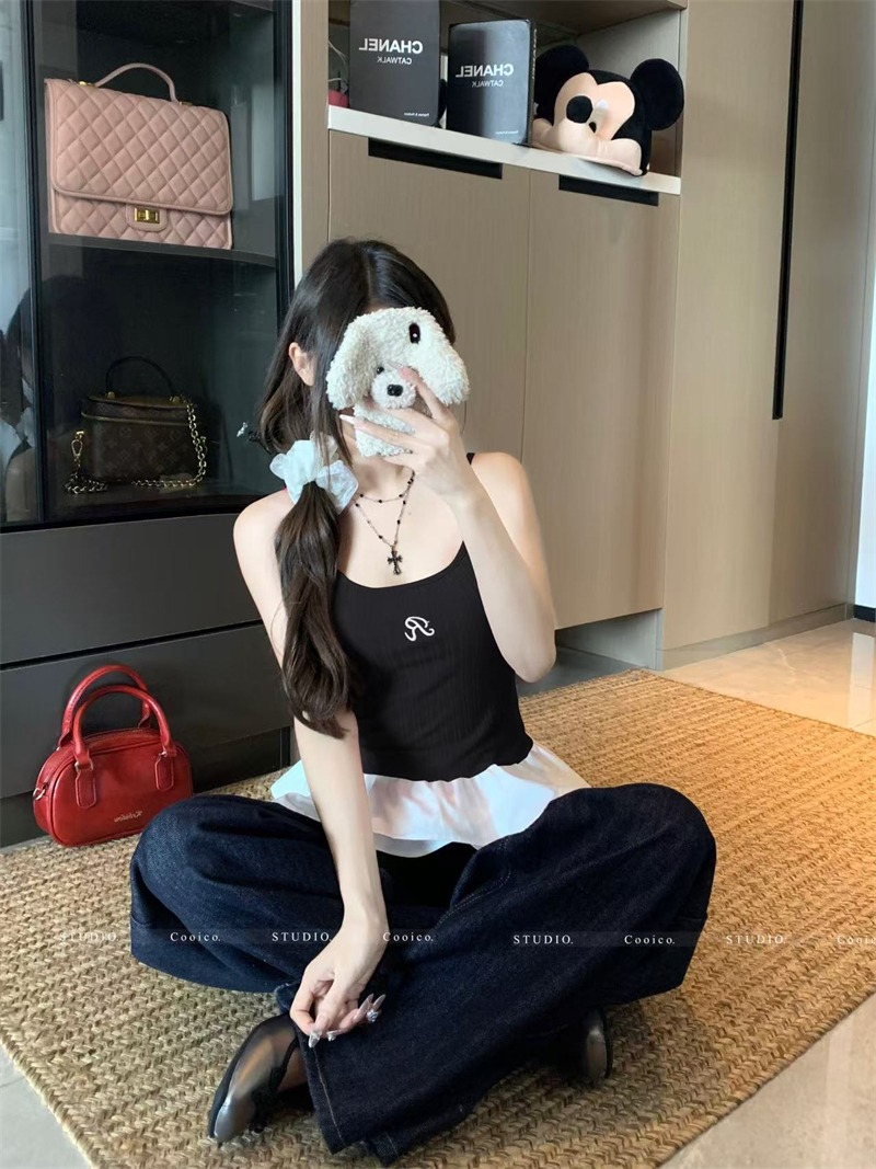 [원래 품질] 발레 스타일 레드 카미솔 여성 여름 레이스 짧은 스위트 스파이스 탑스토어 가기
