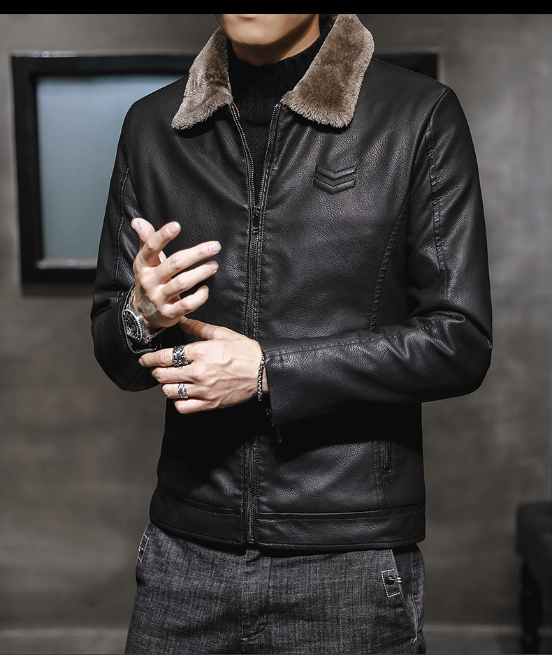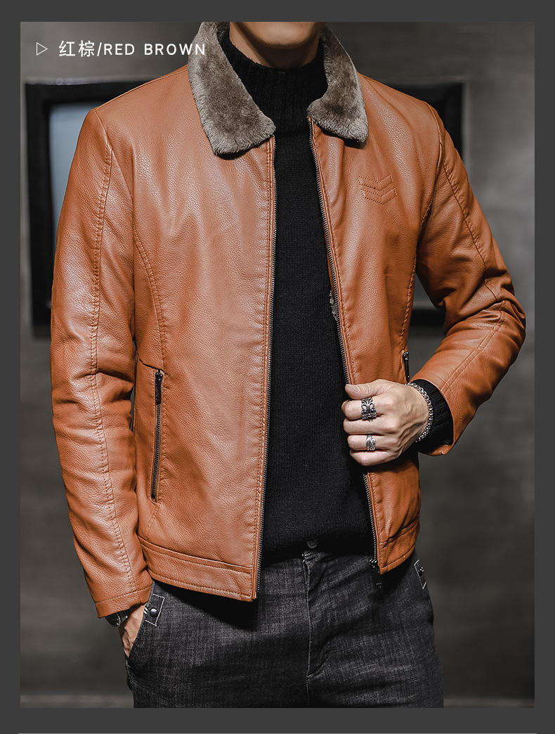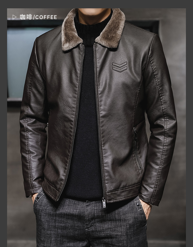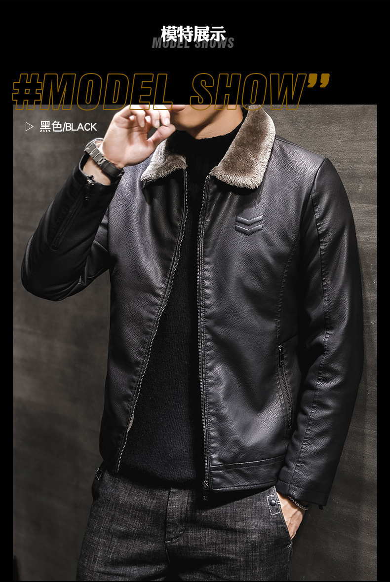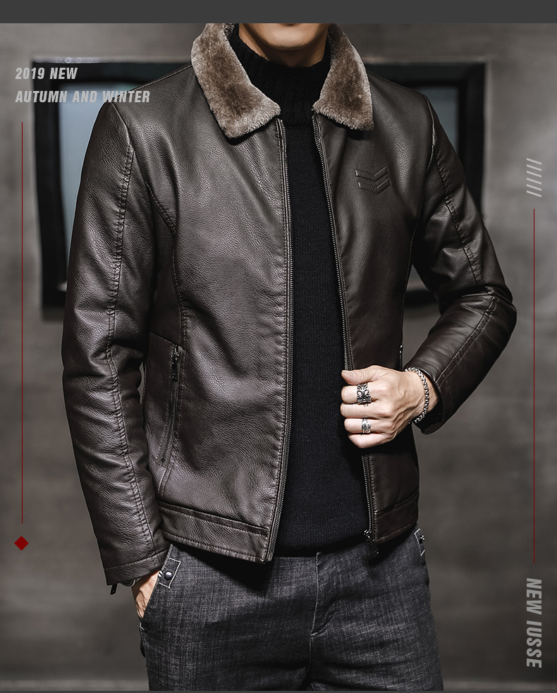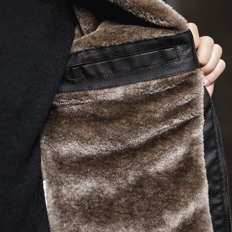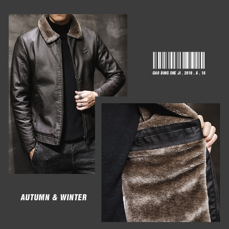 2019 새로운 남성 가죽 자켓 남성 가죽 자켓 옷깃 중년 남성 기모 두꺼운 유행 모피스토어 가기