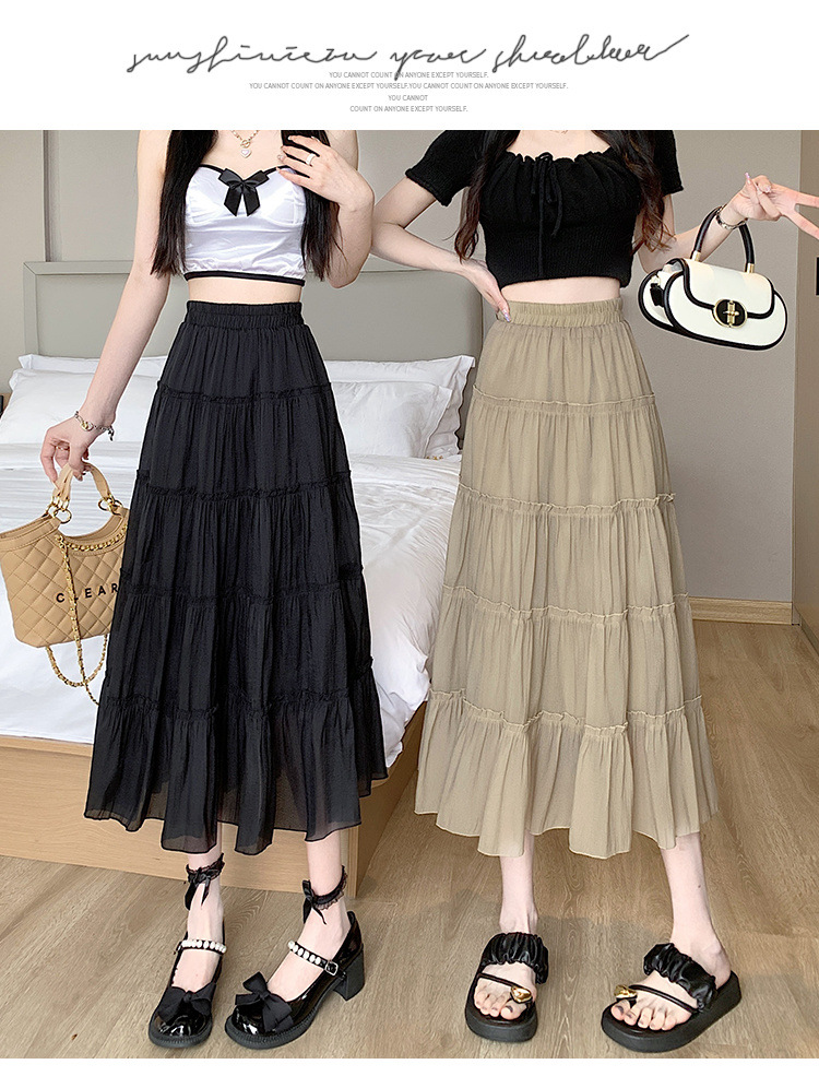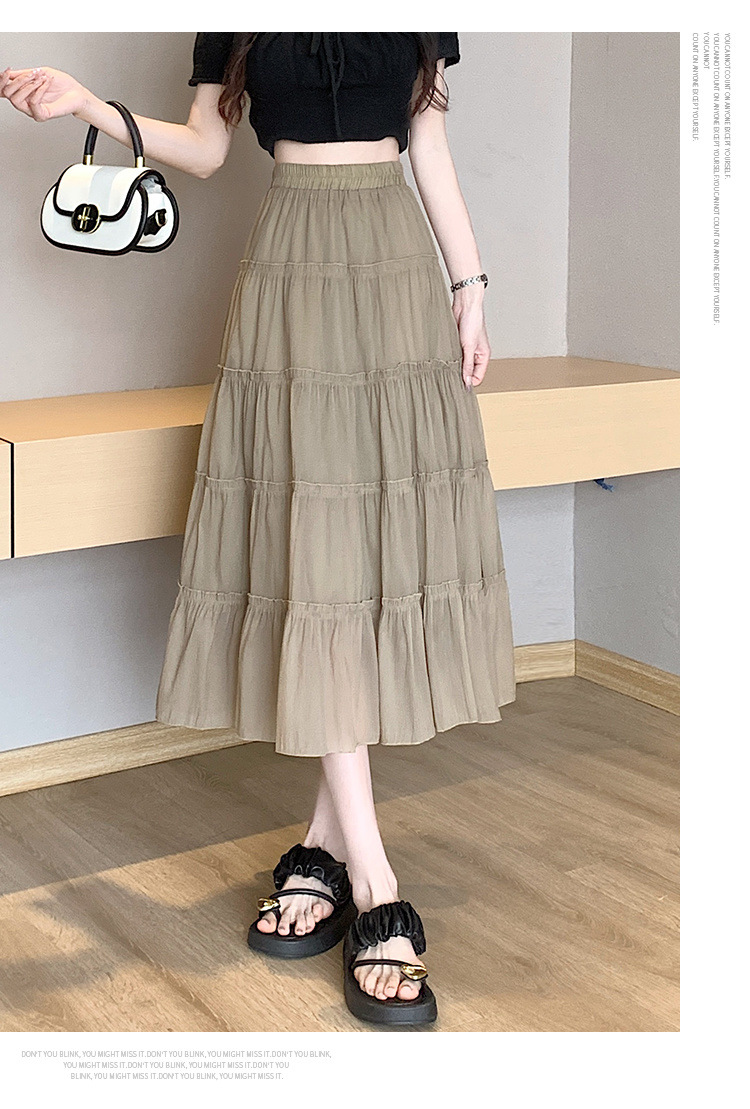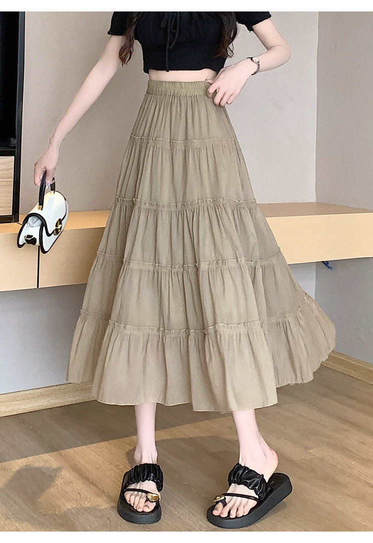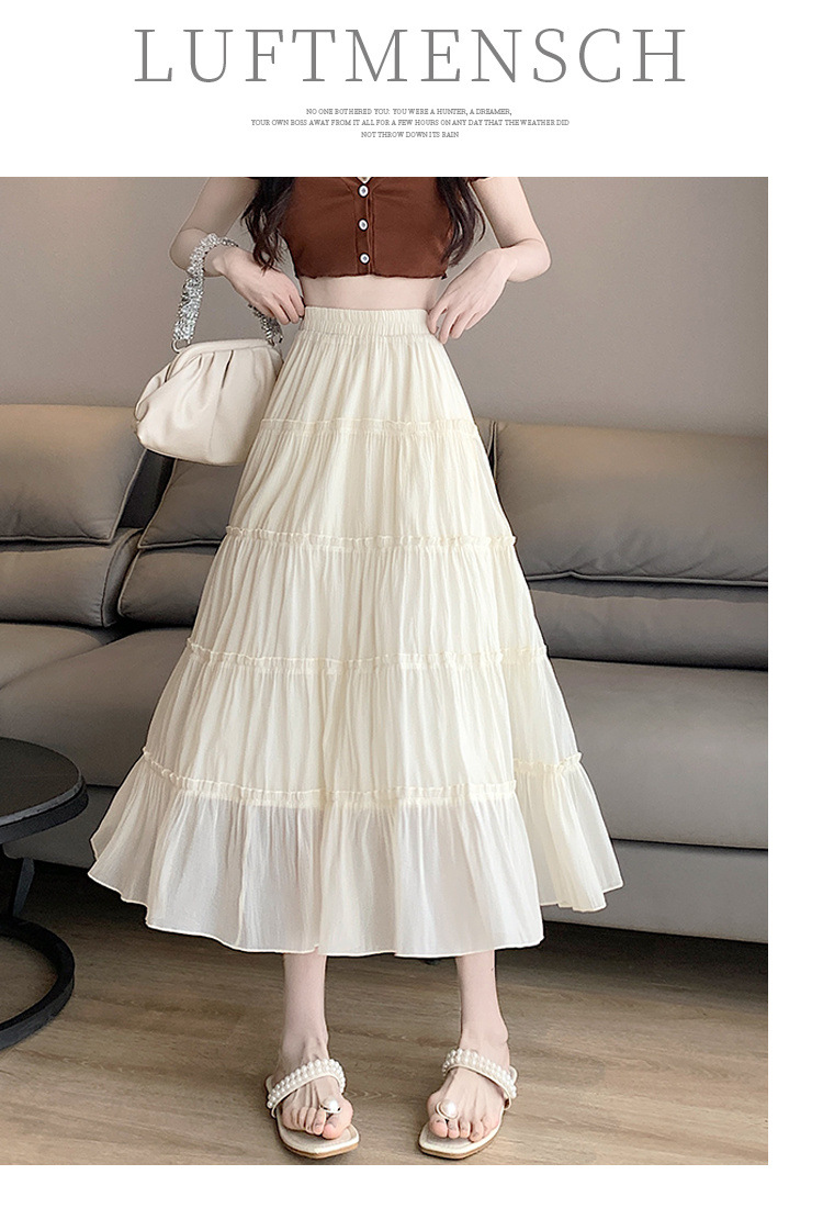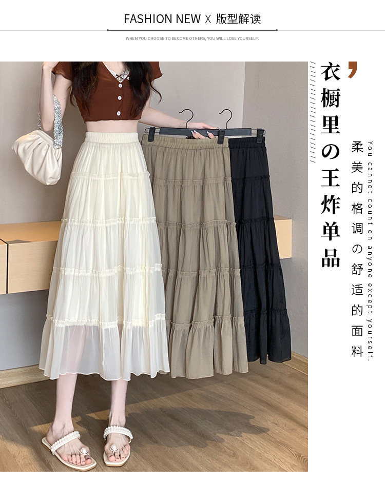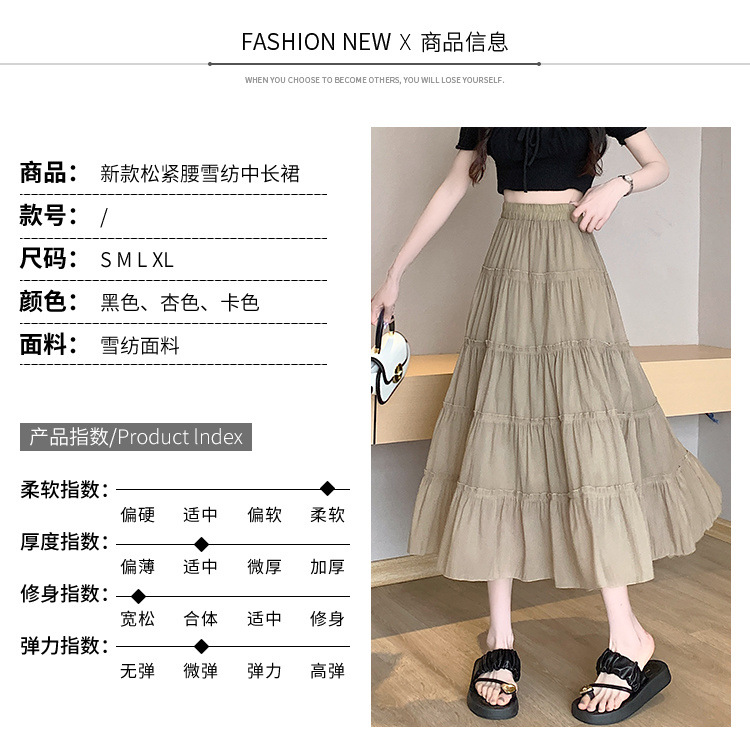 2025 년 여름 새로운 도착 귀 가장자리 Tencel Chiffon A 라인 케이크 스커트 여자 중간 길이의 높은 허리 슬리밍 스커트스토어 가기