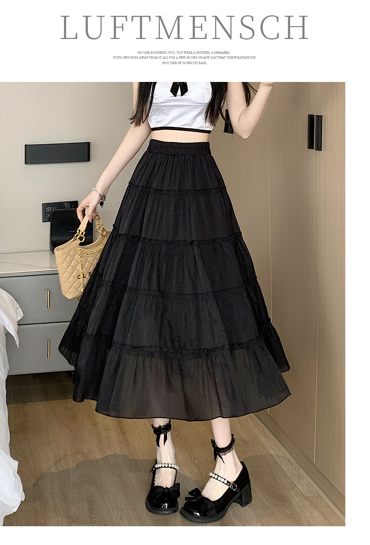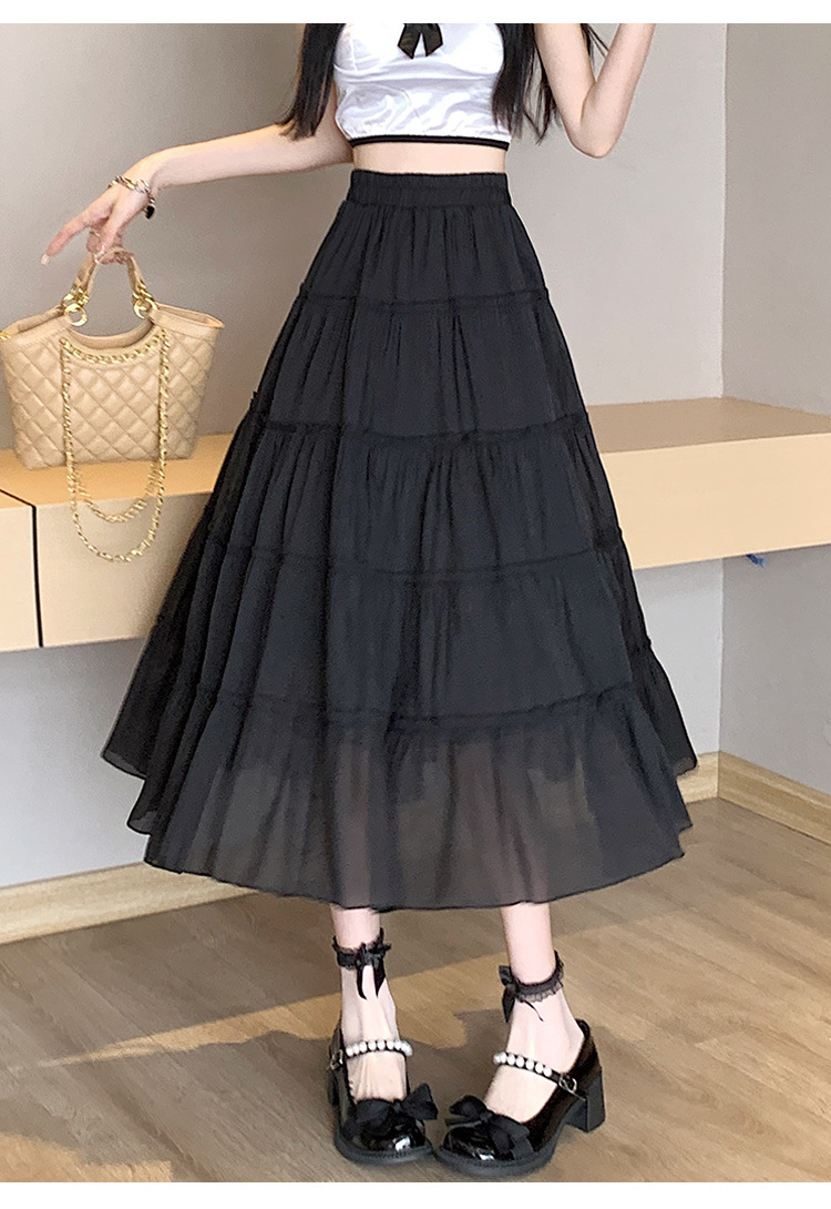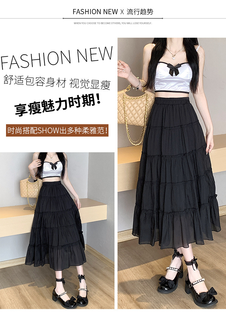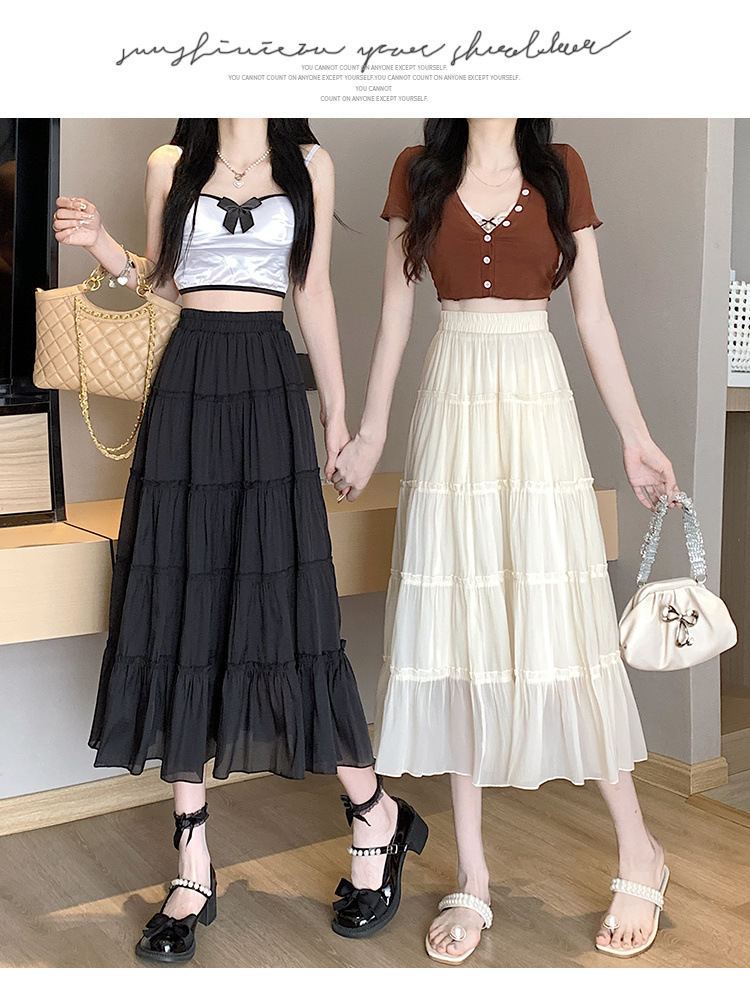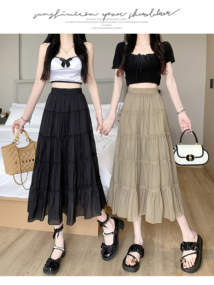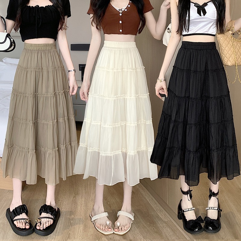 2025 년 여름 새로운 도착 귀 가장자리 Tencel Chiffon A 라인 케이크 스커트 여자 중간 길이의 높은 허리 슬리밍 스커트스토어 가기