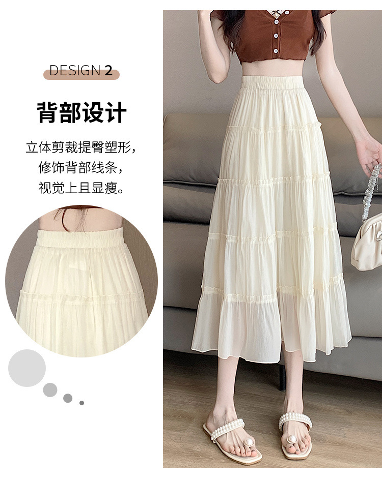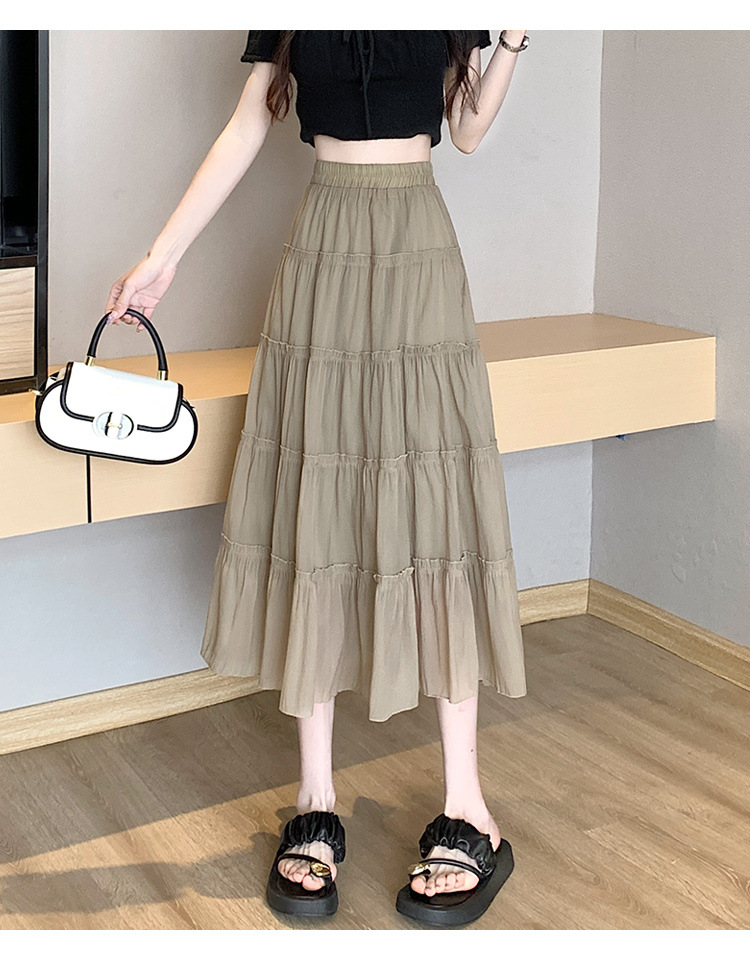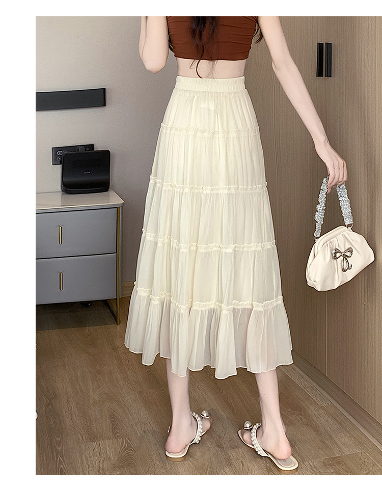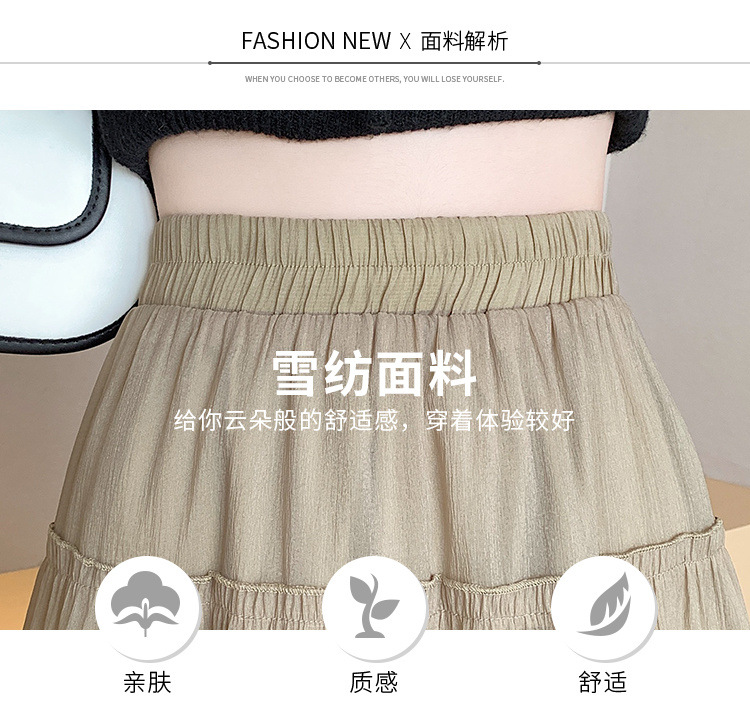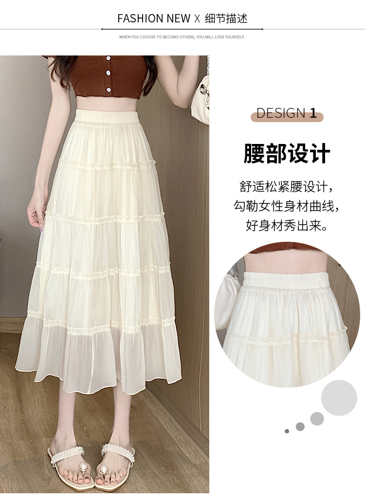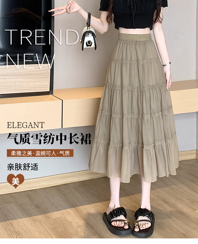 2025 년 여름 새로운 도착 귀 가장자리 Tencel Chiffon A 라인 케이크 스커트 여자 중간 길이의 높은 허리 슬리밍 스커트