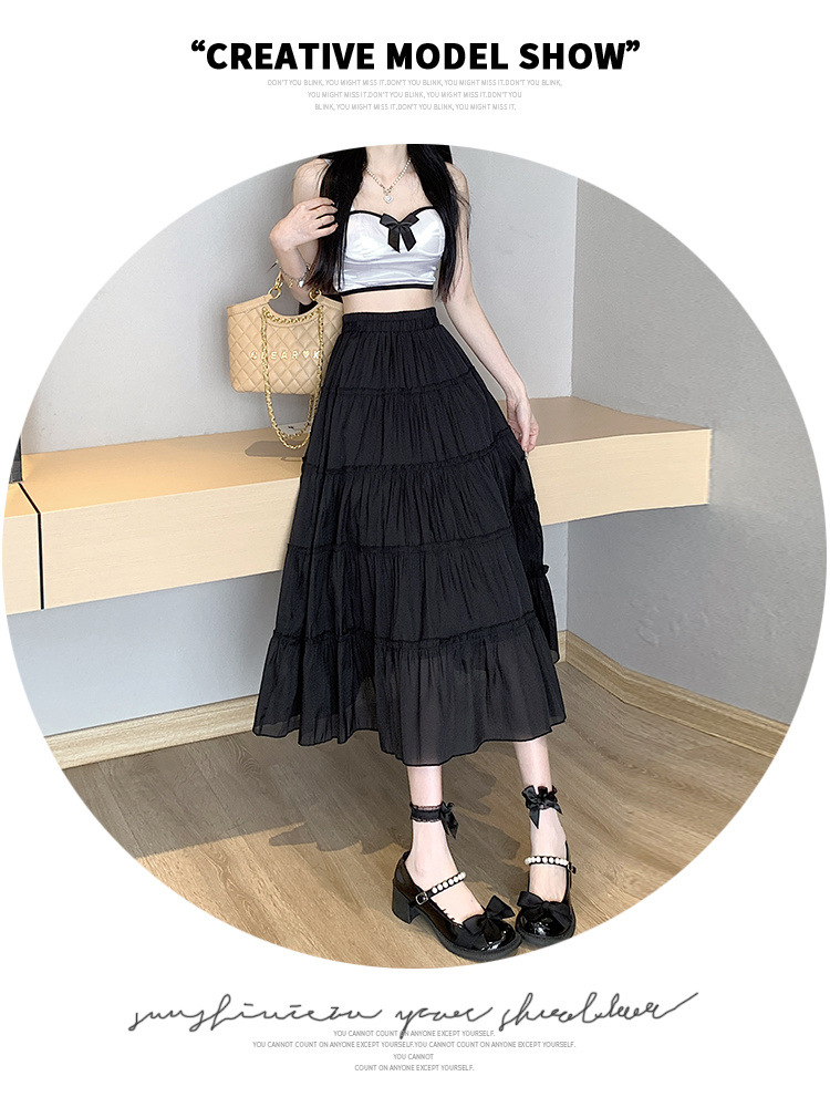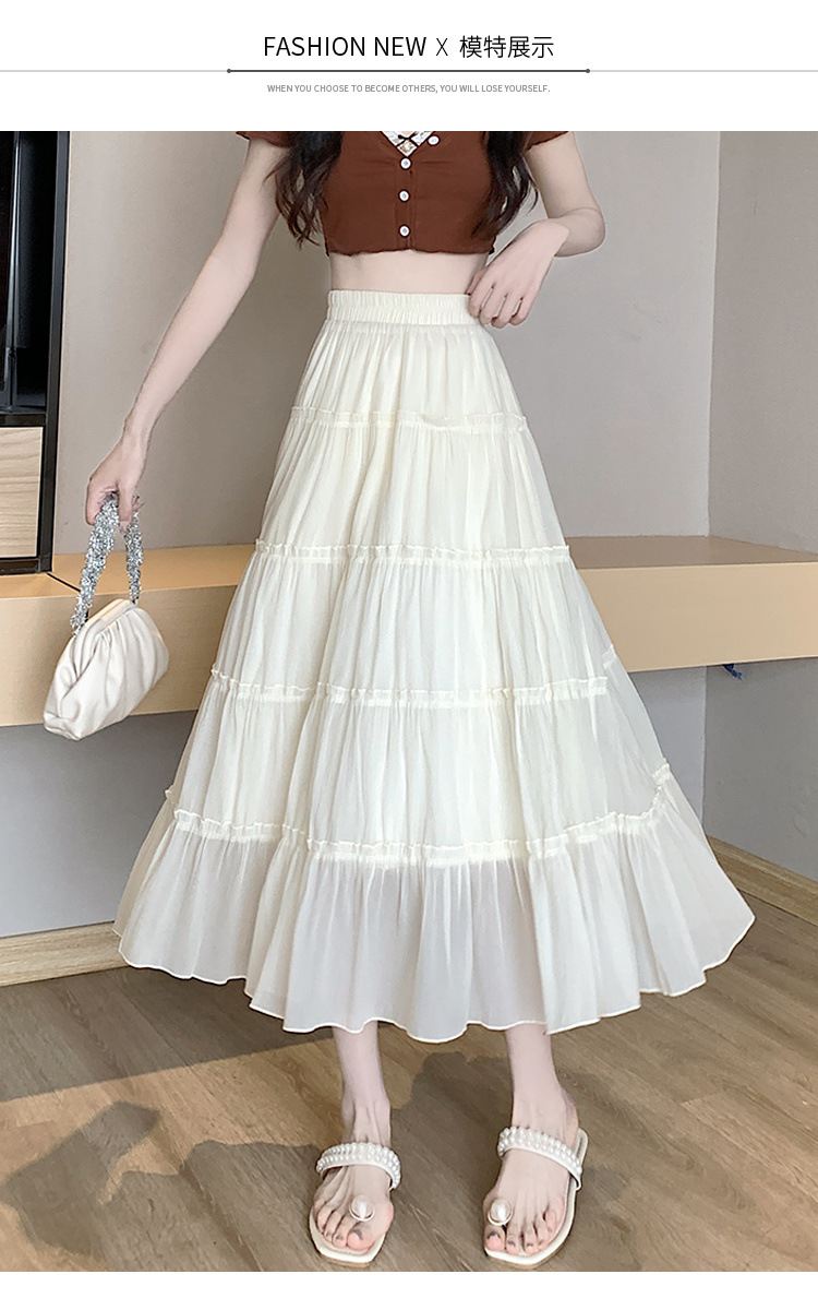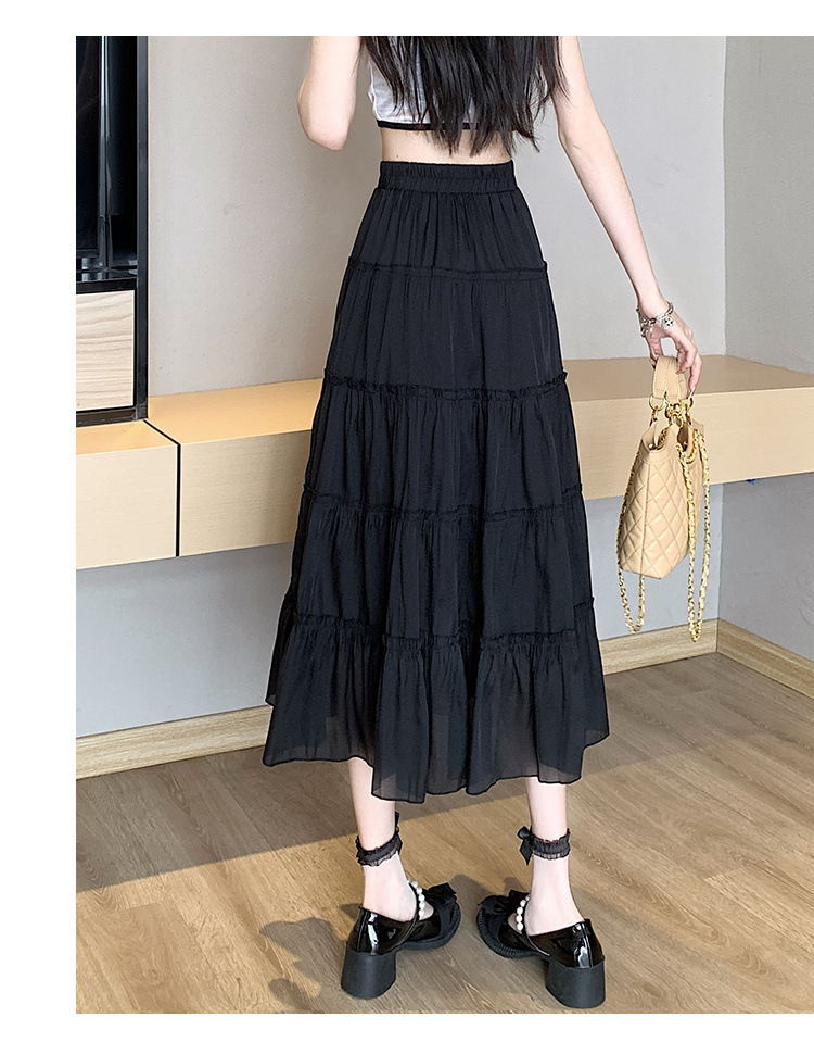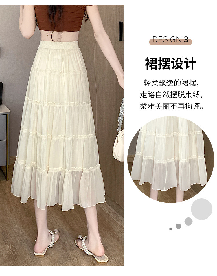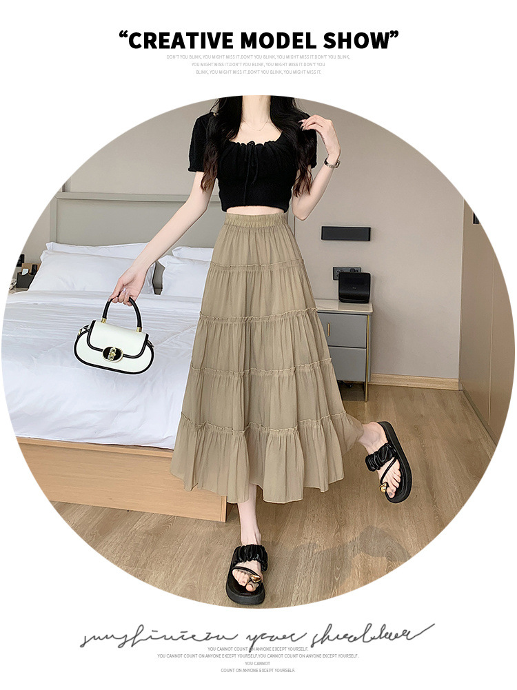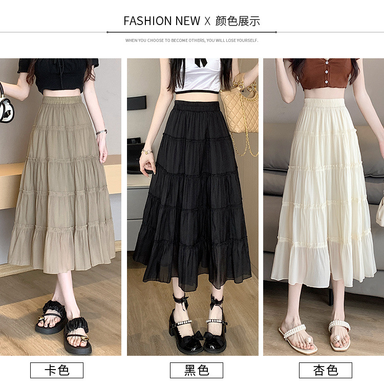 2025 년 여름 새로운 도착 귀 가장자리 Tencel Chiffon A 라인 케이크 스커트 여자 중간 길이의 높은 허리 슬리밍 스커트