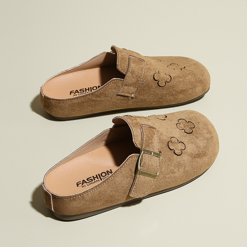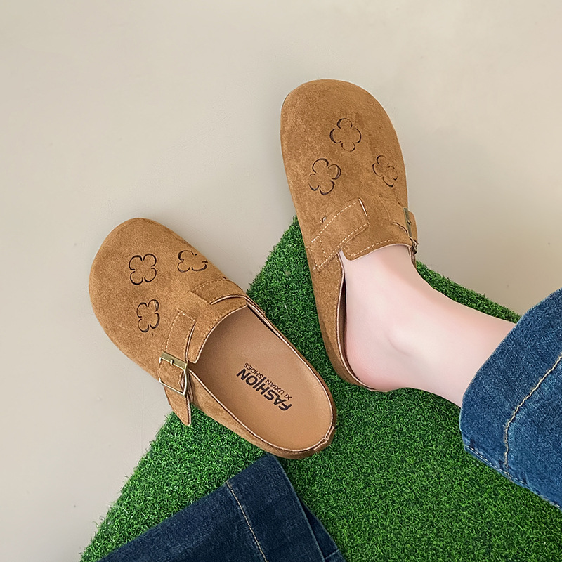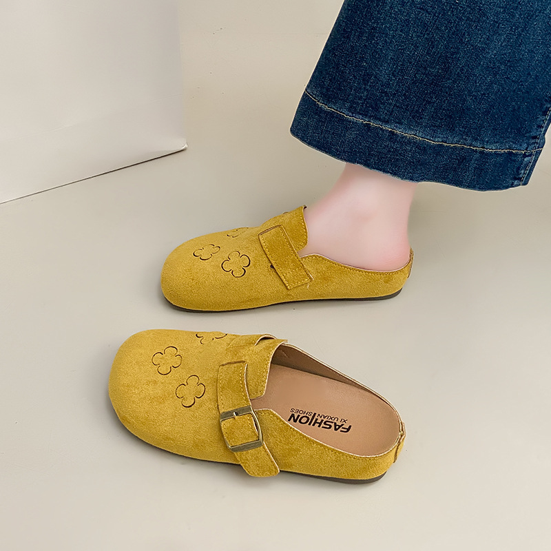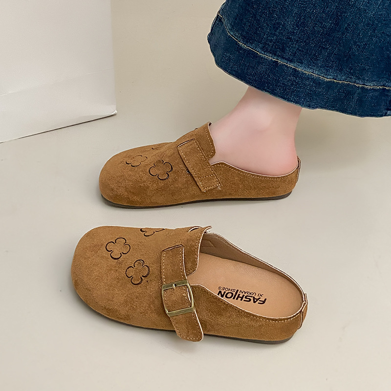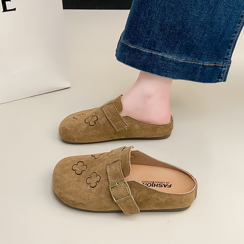 레트로 조각 일본 레트로 슬립 온 바오 터우 버켄 하프 슬리퍼 여성 2025 봄 새로운 미운 귀여운 하프 슬리퍼