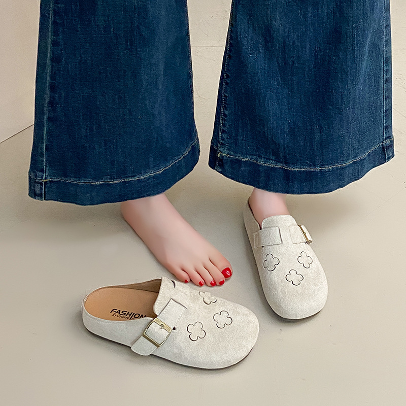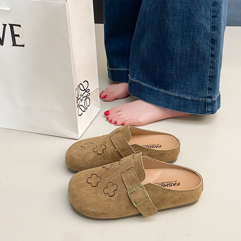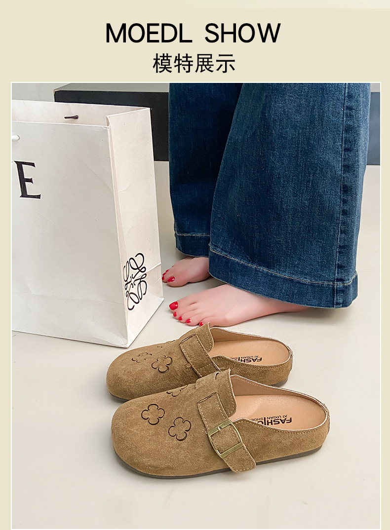 레트로 조각 일본 레트로 슬립 온 바오 터우 버켄 하프 슬리퍼 여성 2025 봄 새로운 미운 귀여운 하프 슬리퍼스토어 가기