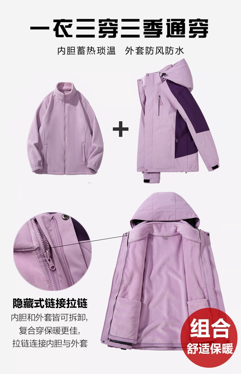 Sheng Bangrong 3 대 1 충전 의류 3 대 남성 및 여성 야외 의류 동일 스타일 방풍 방수 통기성 작업 옷 봄