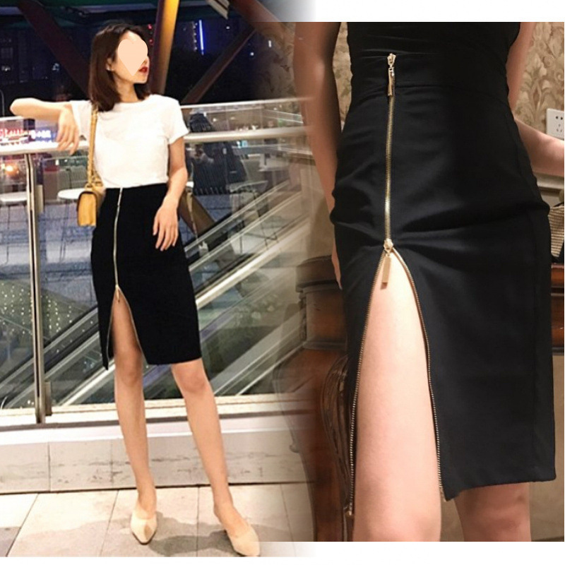 2024 새로운 스타일 맞춤형 트렌디 한 올매치 하이 허리 지퍼 스커트 프론트 스플릿 힙 슬림 핏 디자인 센스스토어 가기