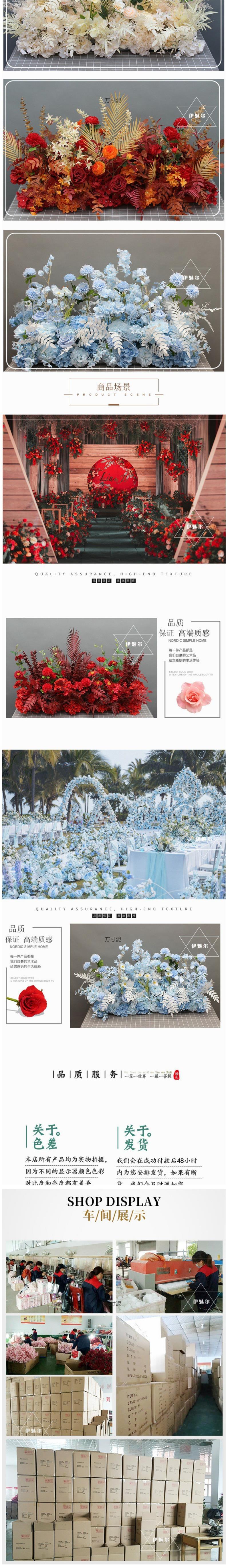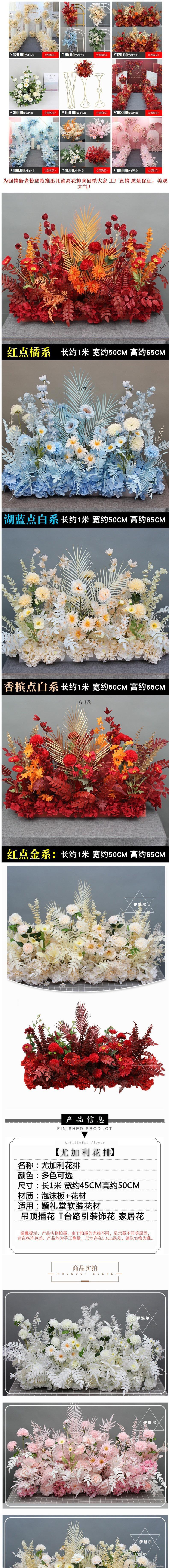 새로운 결혼식 대규모 꽃 줄 시뮬레이션 실크 꽃 완성 장식 유칼립투스 꽃 행 활주로 도로 결혼식 꽃 예술