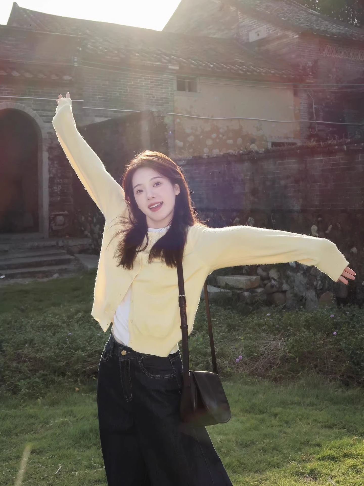 밀크 옐로우 페이크 2 피스 니트 카디건 탑 여성 이른 봄 한국 스타일 착용 디자인 센스 올매치 긴팔 스웨터 트렌디스토어 가기