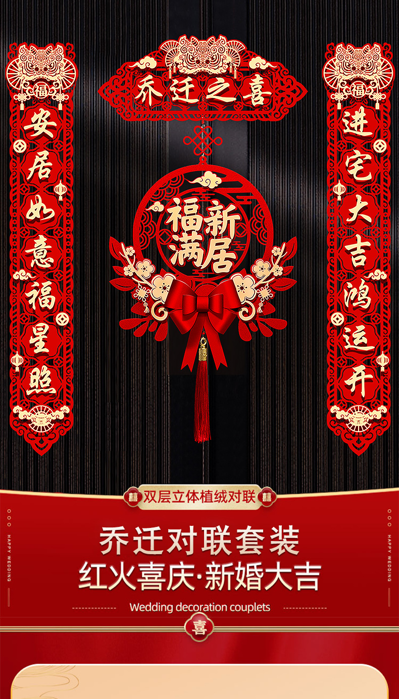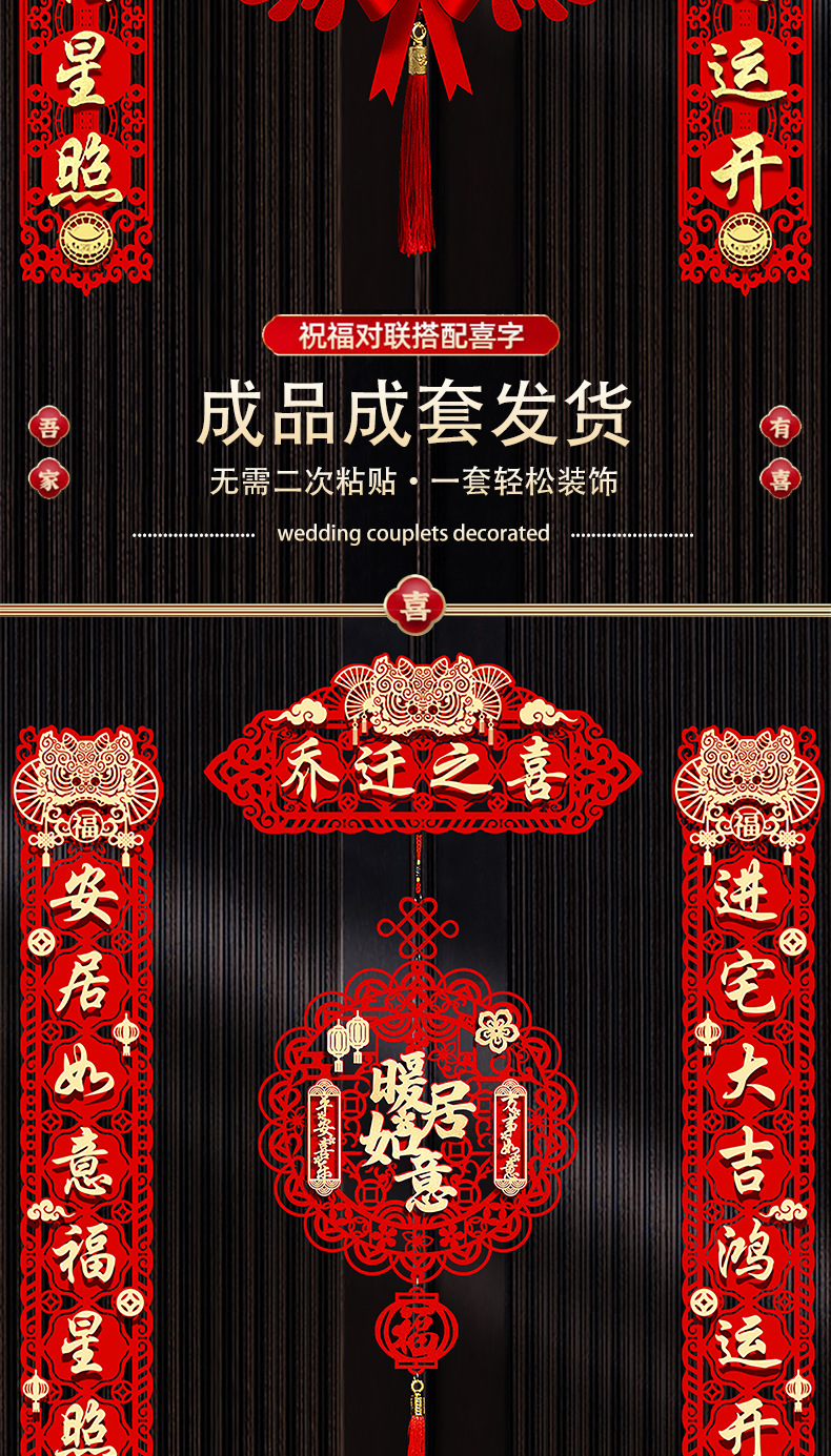 ✅집들이 부부의 기쁨 움직이는 의식 용품 문 새 집 입구 집 새 집 행운의 펜던트 새로운