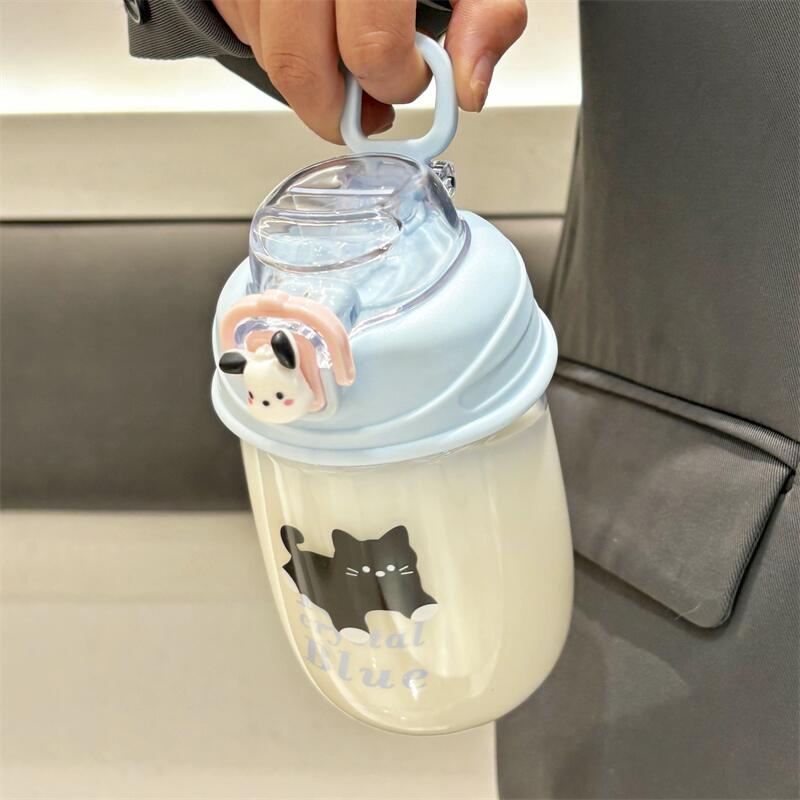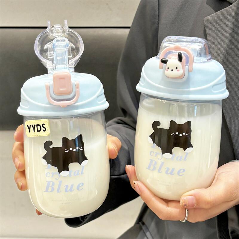 여름 학생 밀짚 컵 새로운 플라스틱 컵 귀여운 만화 휴대용 대용량 높은 색상 가치 컵스토어 가기