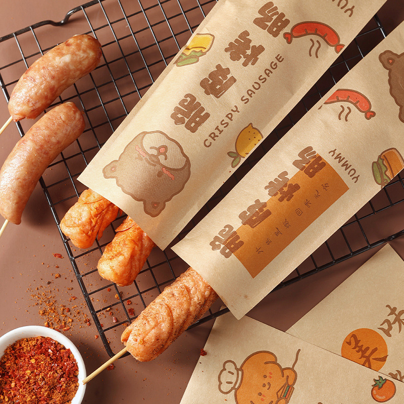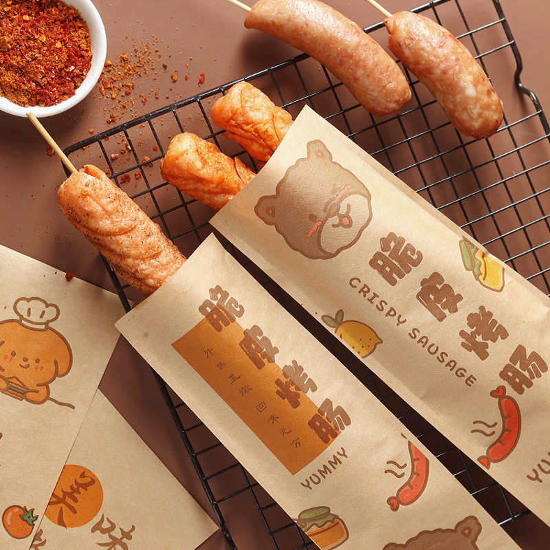 구운 소시지 종이 가방 일회용 전분 소시지 포장 종이 코팅 바삭한 소시지 기름 방지 종이 가방 포장 상자 제조 업체 현실스토어 가기