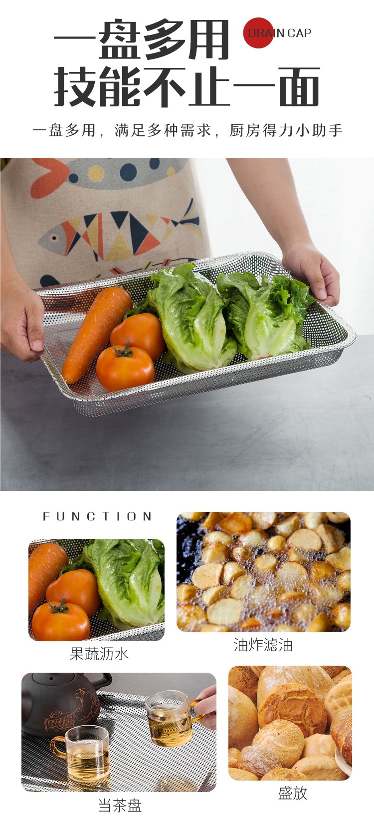 식품 등급 304 스테인레스 스틸 티 트레이 치세 구멍 누출 트레이 작은 구멍 찌는 트레이 배수 스퀘어 트레이 오일 격리 상업용 오일 필터 트레이스토어 가기