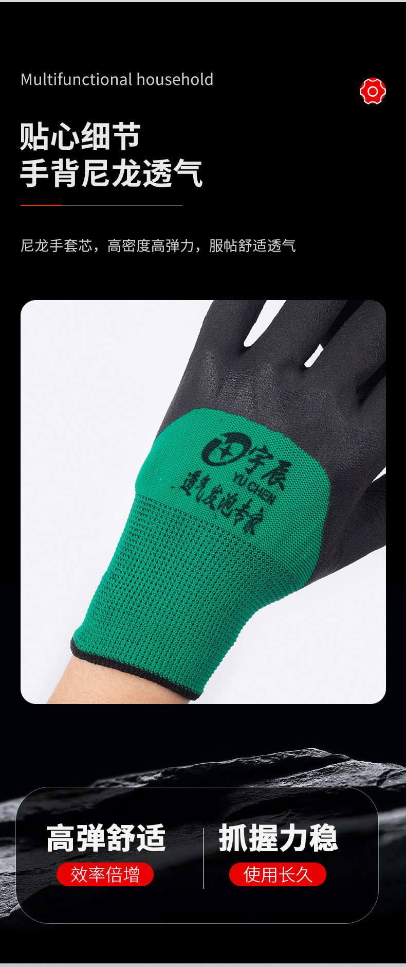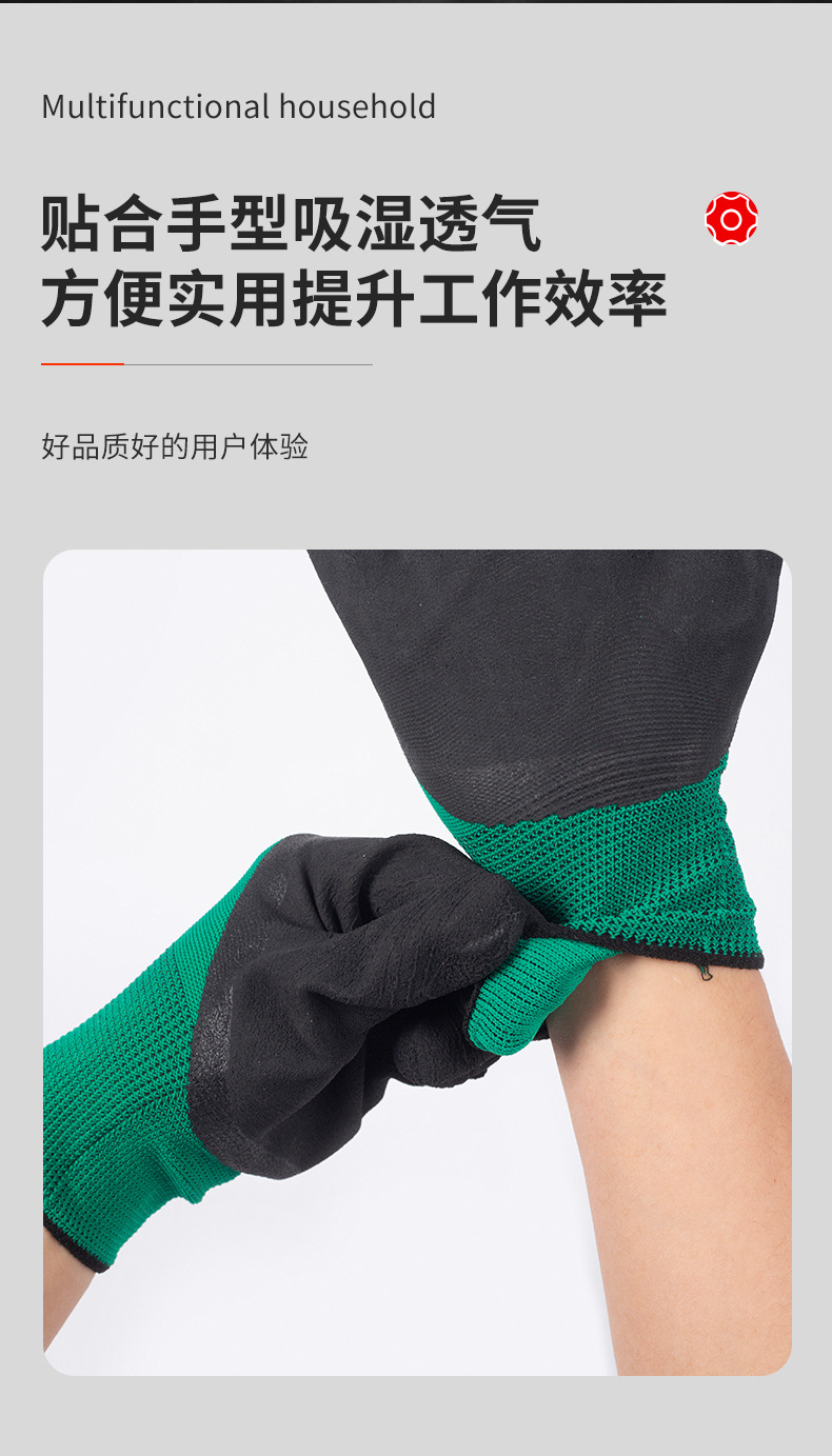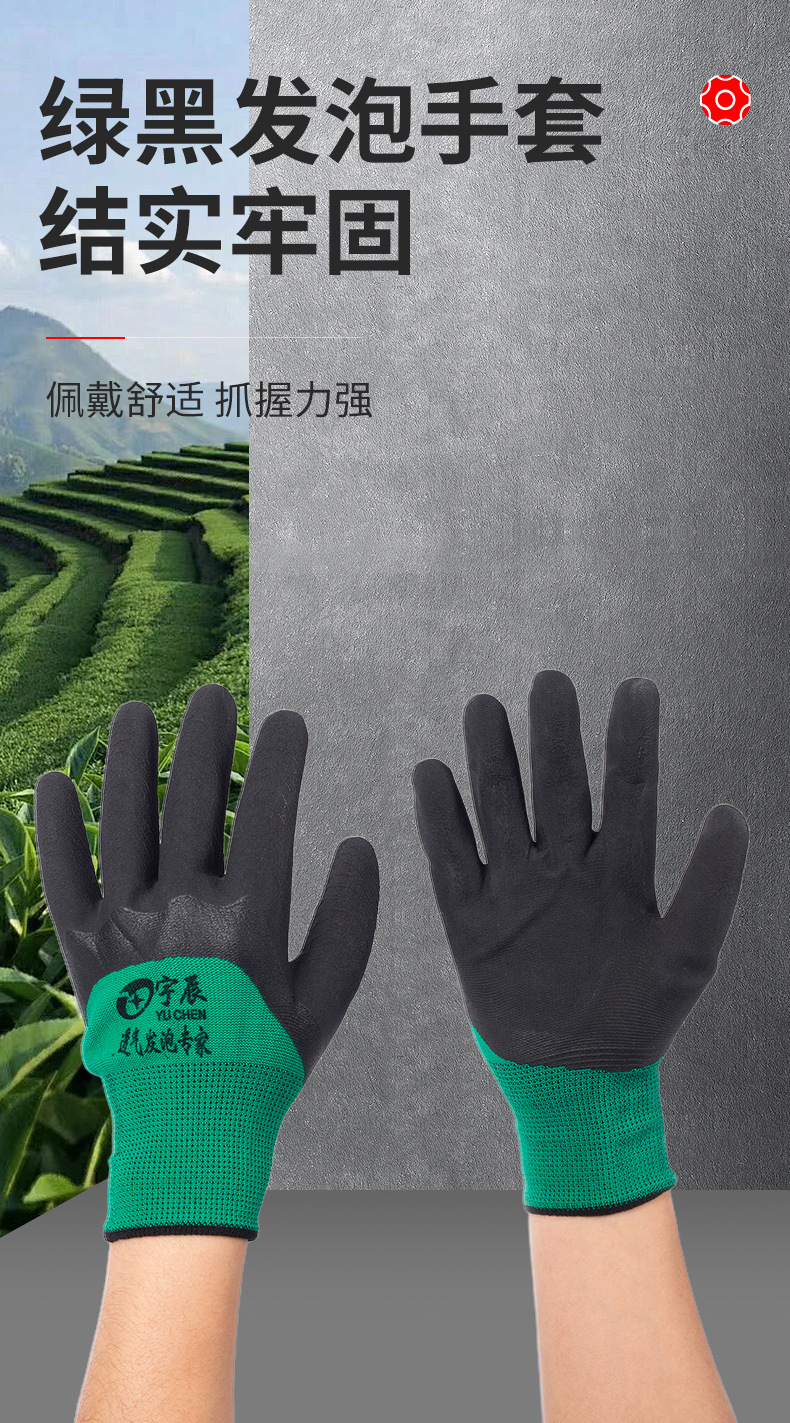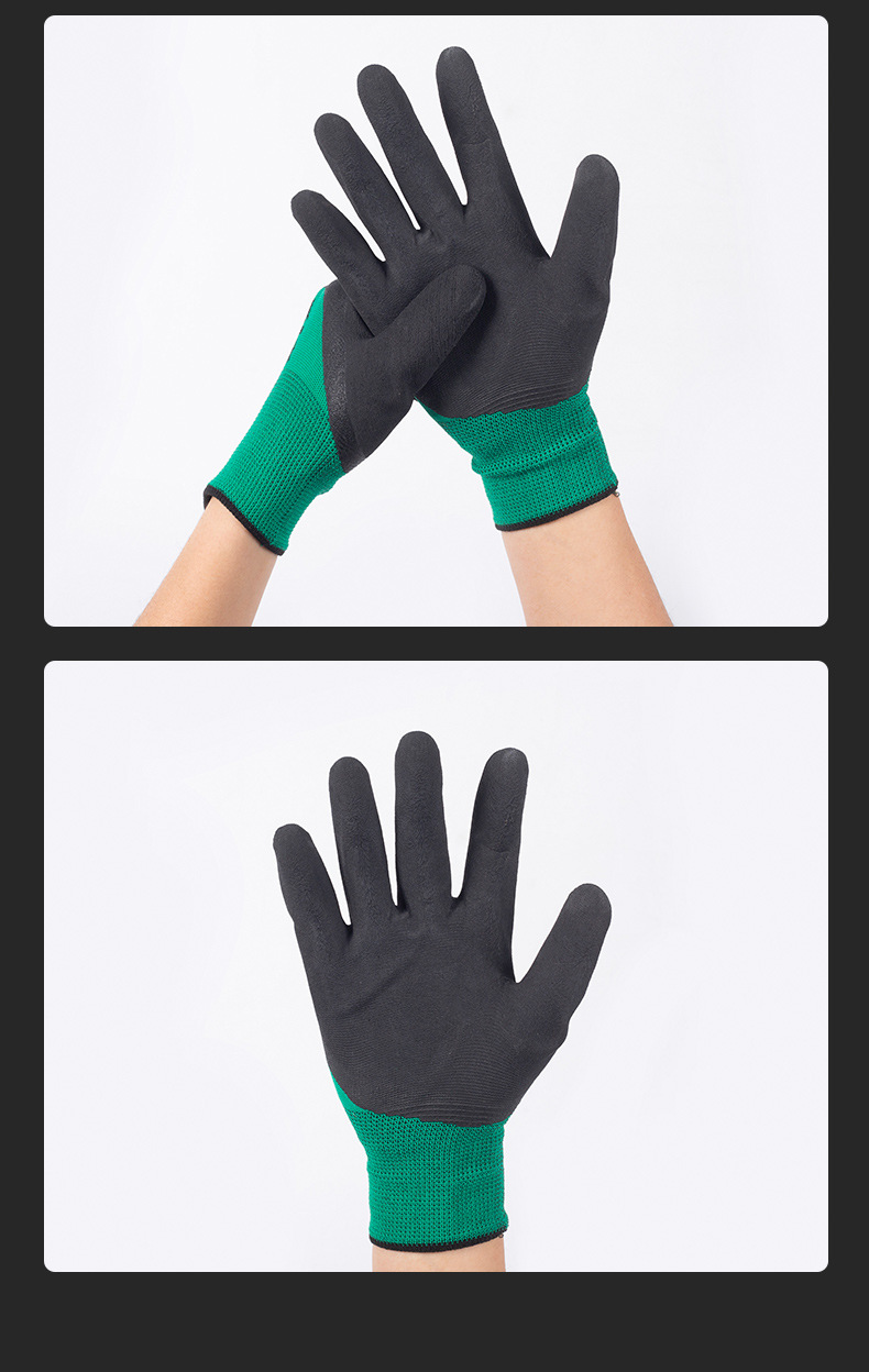나일론 담근 접착제 주름 발포 통기성 킹 장갑 미끄럼 방지 농업 노동 보호 접착제 교수형 장갑 작업 현장스토어 가기