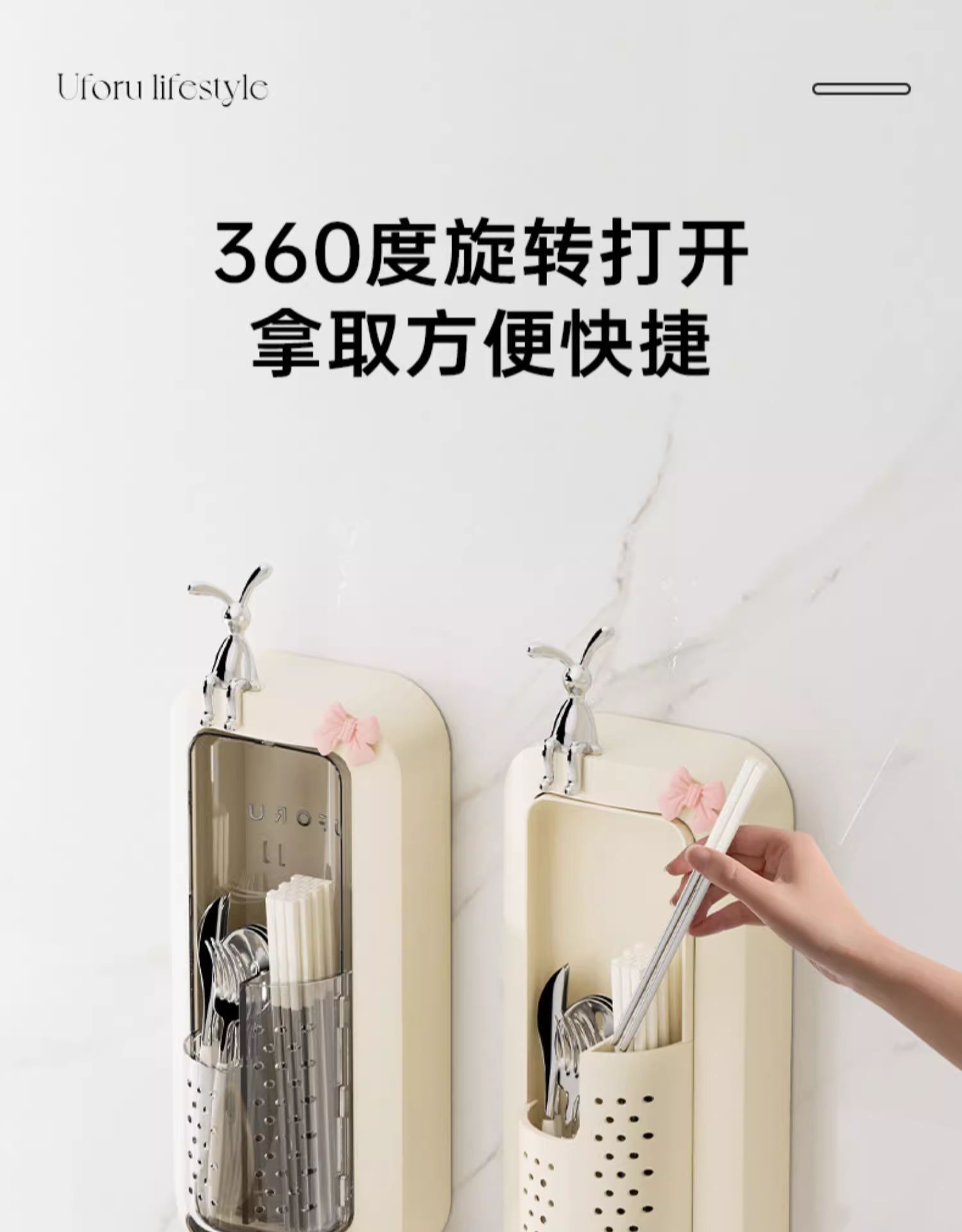 젓가락 저장 상자 회전 젓가락 홀더 벽에 장착 된 가정용 주방 방진 식기 뚜껑 숟가락 서랍 보관 랙스토어 가기