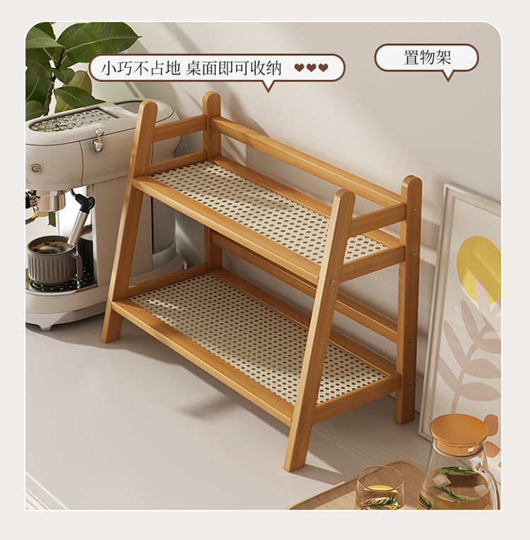 Ins 등나무 간단한 더블 레이어 데스크탑 스토리지 랙 데스크 보관 보관 주방 침실 컵 랙 마무리 Geng 대나무스토어 가기