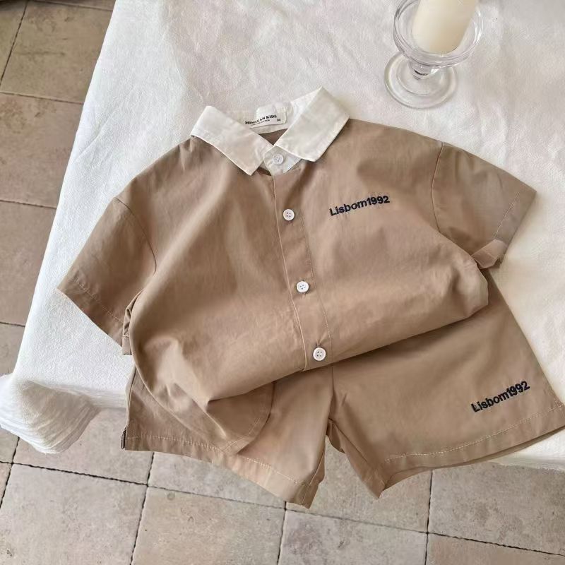 어린이 세트 2025 여름 옷 소년 편지 셔츠 세트 아기 어린이 여름 옷 한국 짧은 소매