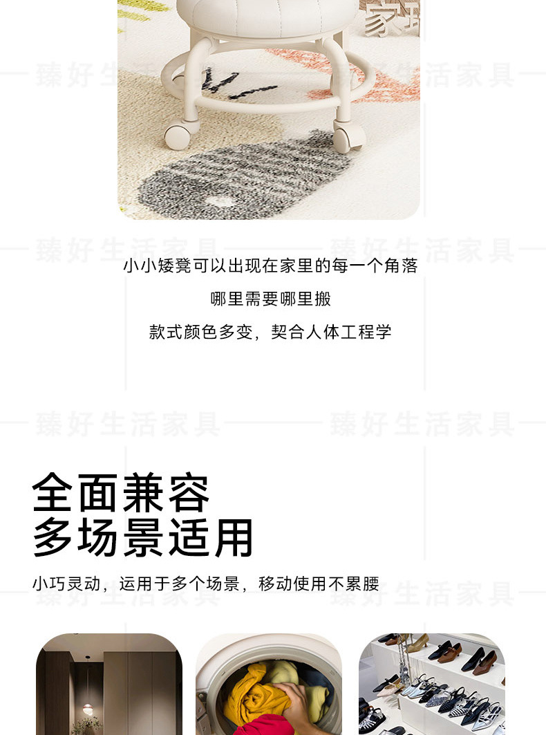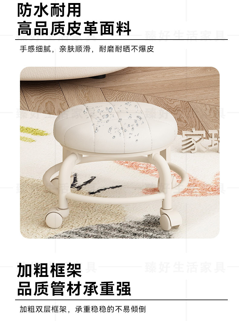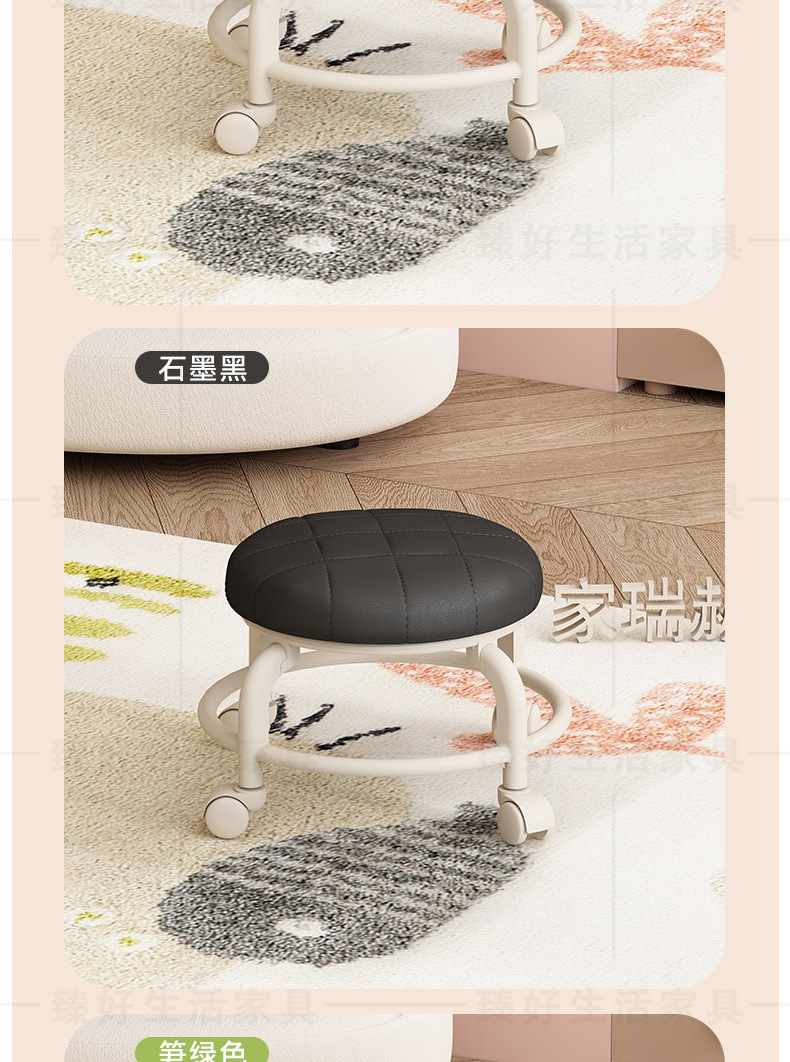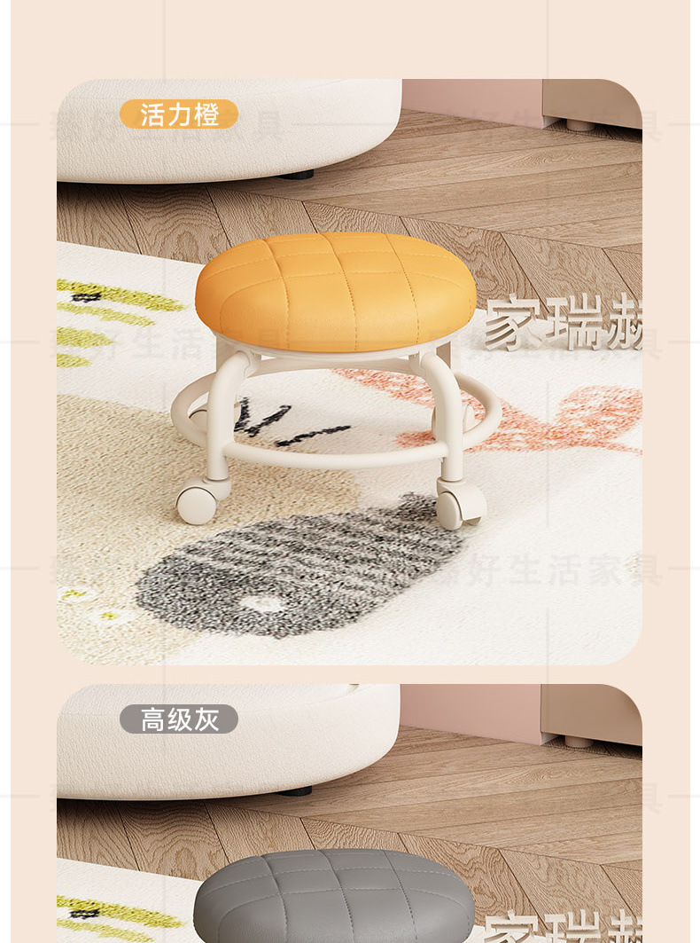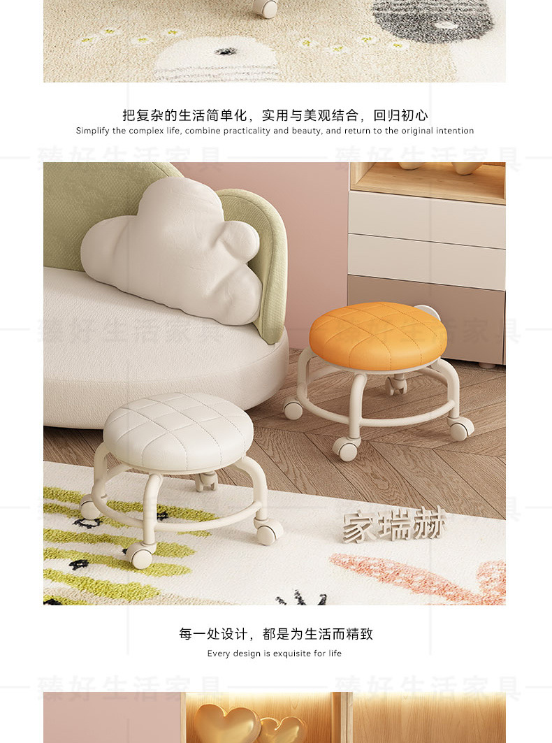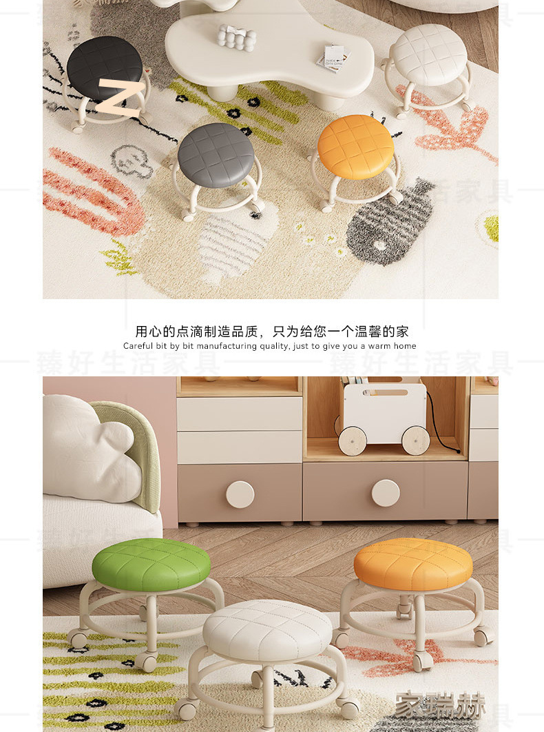 아기 아티팩트 유니버설 휠 풀리 로우 스툴 어린이 유아 스툴 다기능 아름다운 솔기 페디큐어 신발 변경 의자 라운드 스툴 소프트 시트스토어 가기