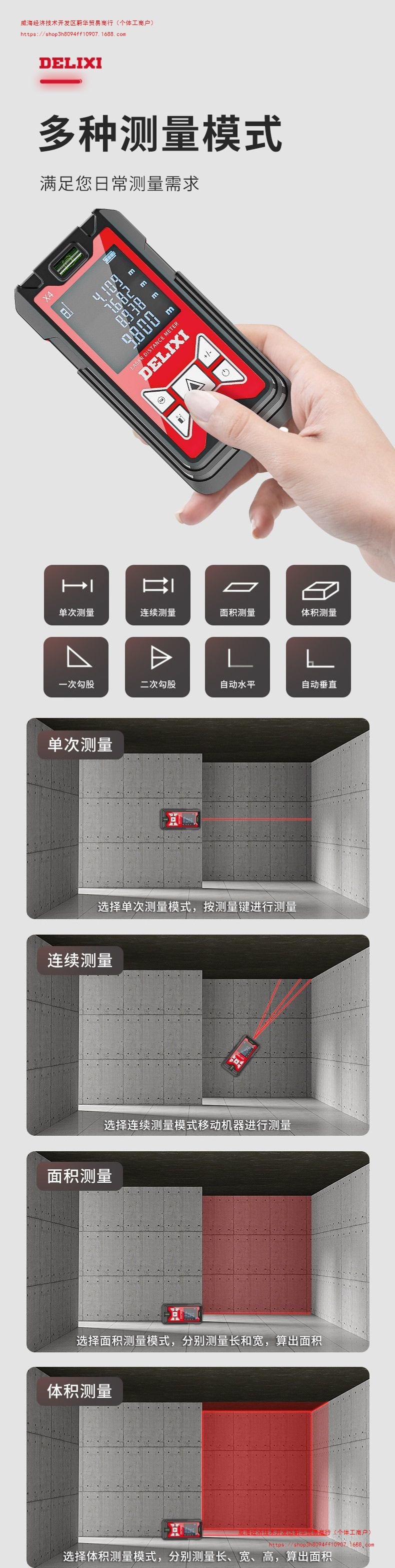 Delixi 레이저 거리계 고정밀 전자 통치자 테이프 측정 휴대용 측정 실 측정 계기 적외선 측정 장비스토어 가기