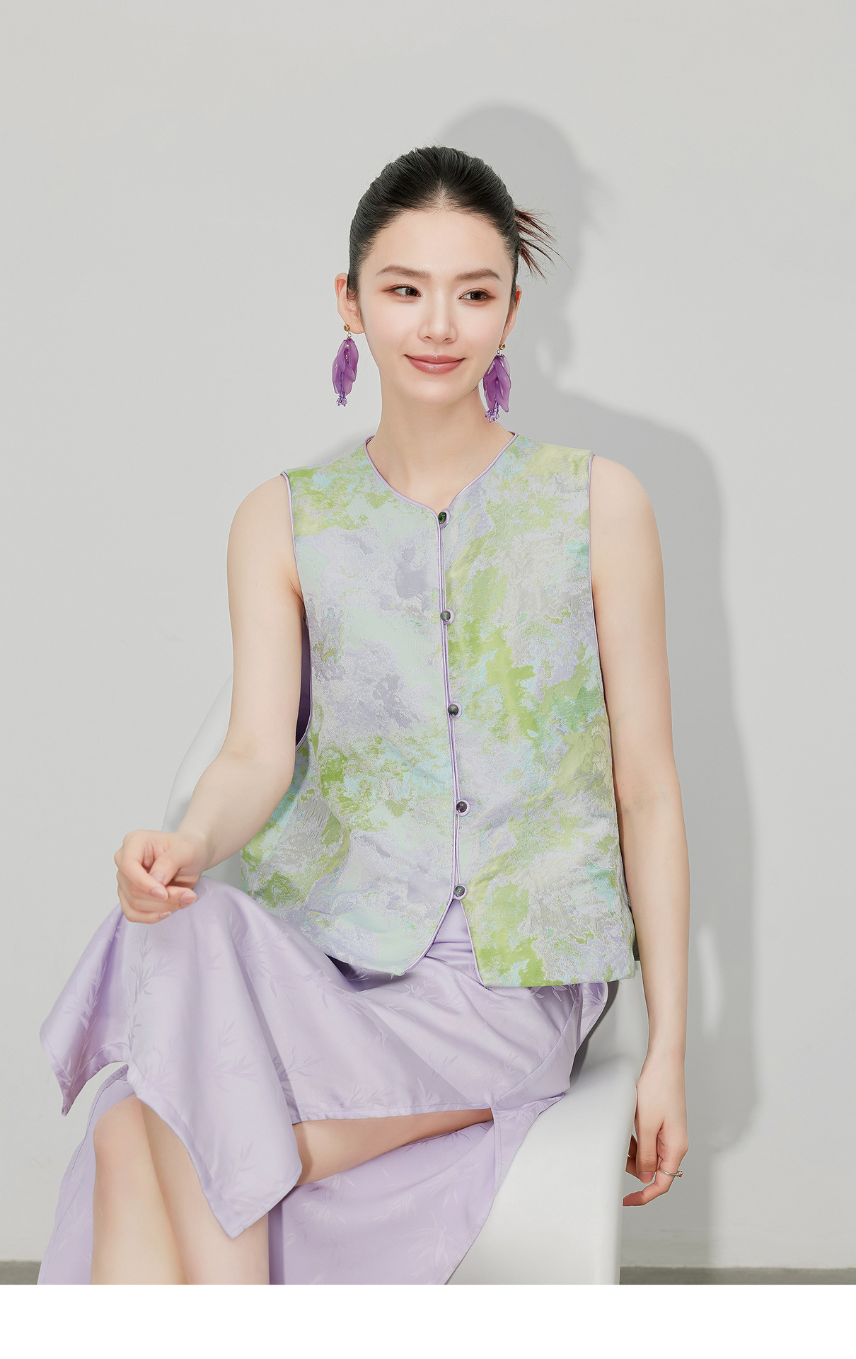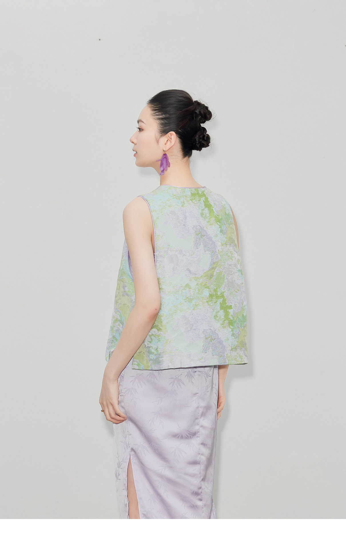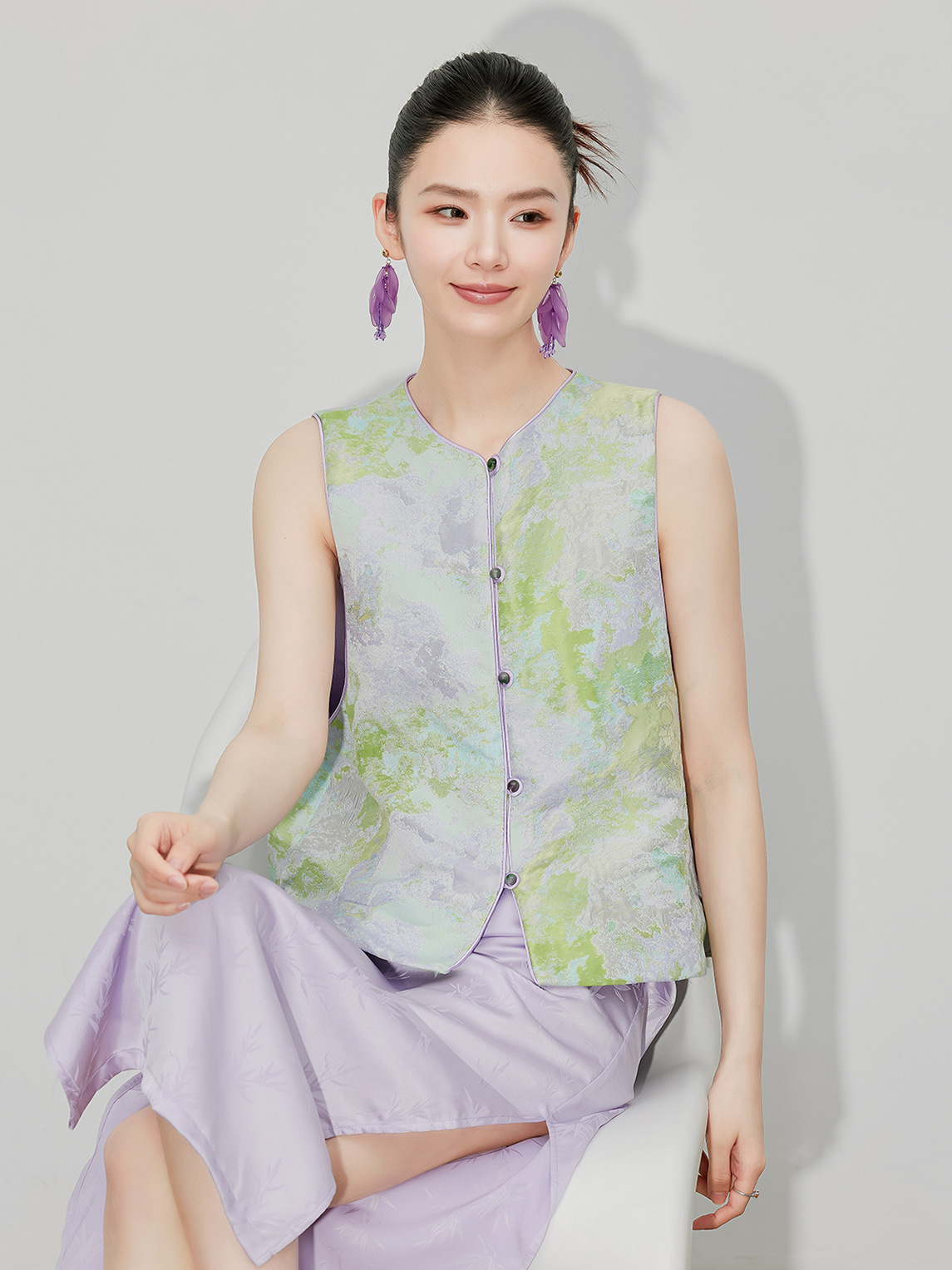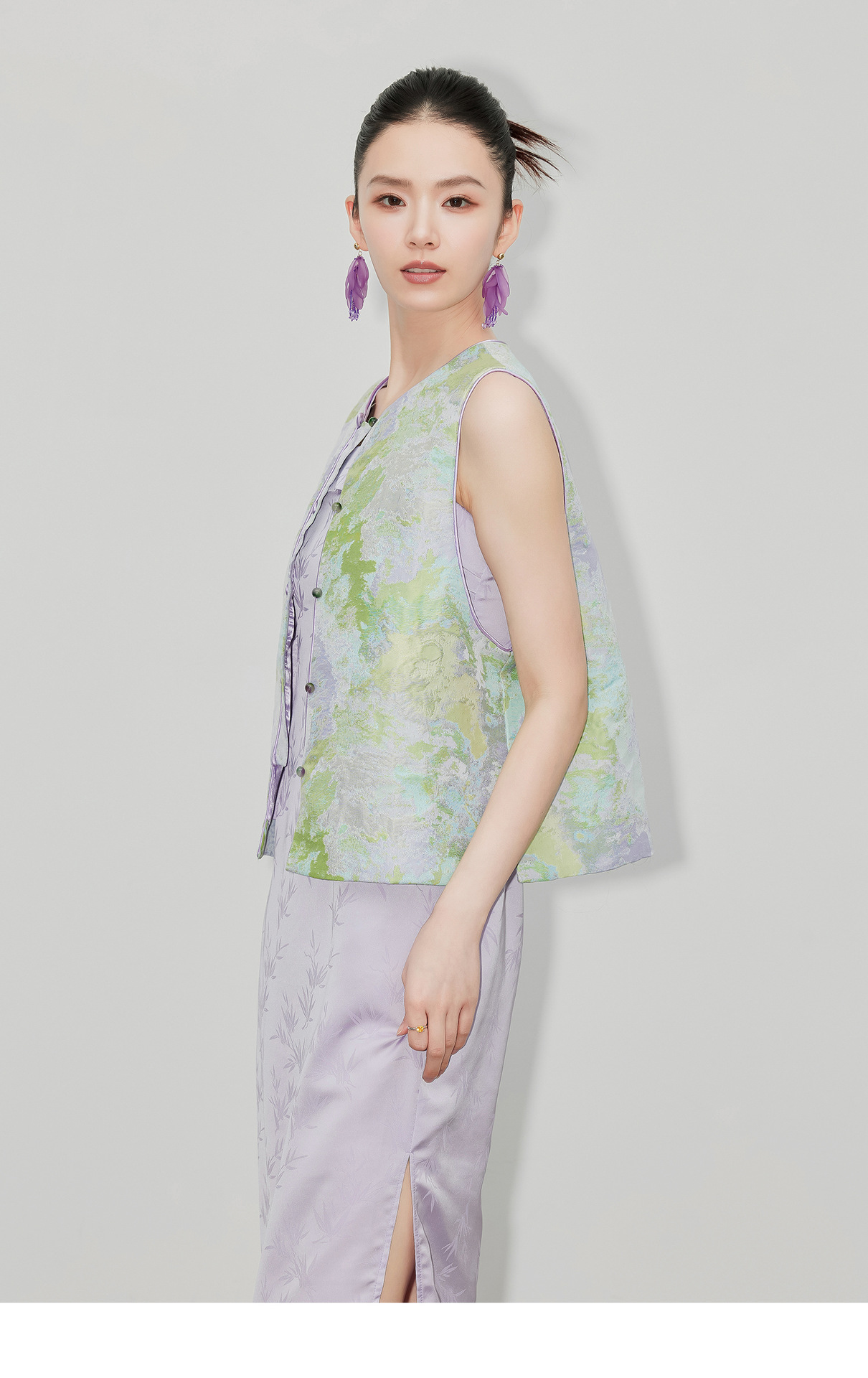 [지허탕] 봄 여름 퍼플 에메랄드 글레이즈 조끼 여성 브로케이드 자카드 중국 스타일 탑 조끼 3011 에메랄드 컬러