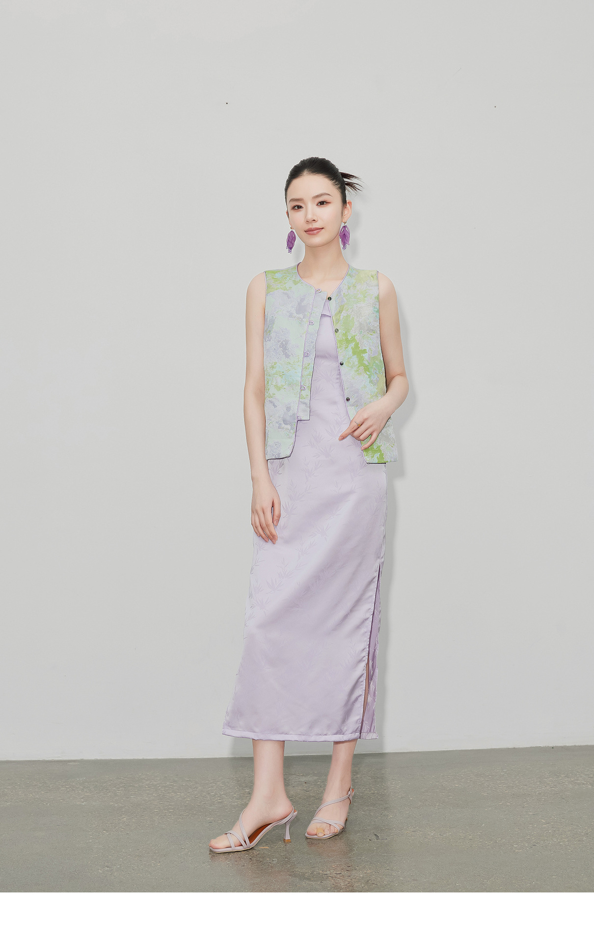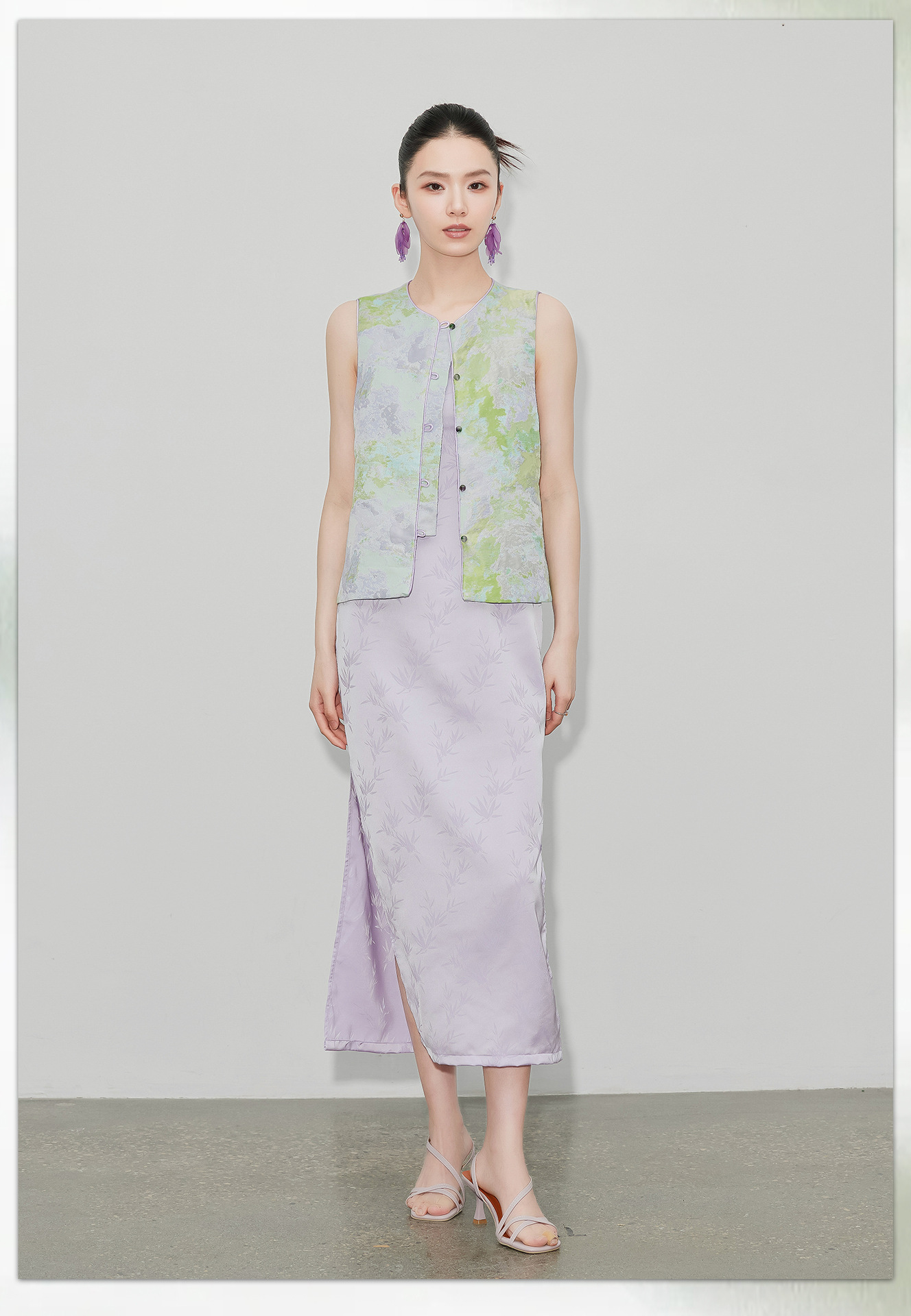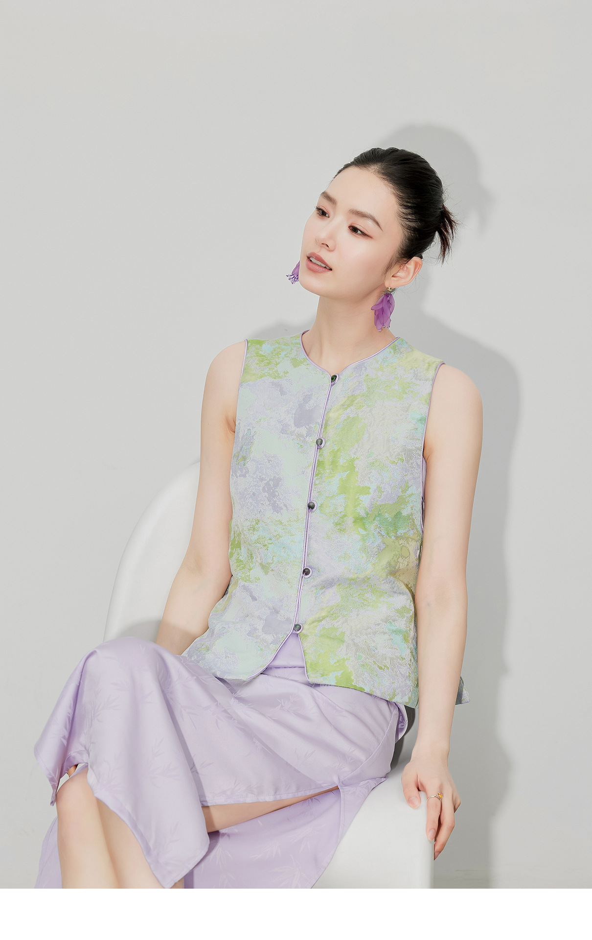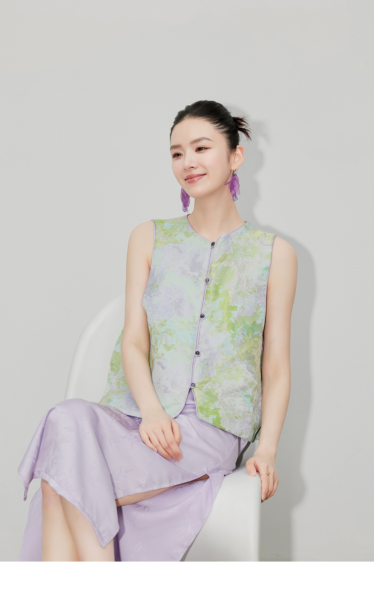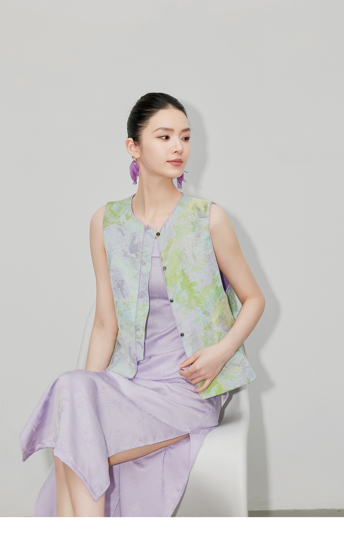 [지허탕] 봄 여름 퍼플 에메랄드 글레이즈 조끼 여성 브로케이드 자카드 중국 스타일 탑 조끼 3011 에메랄드 컬러