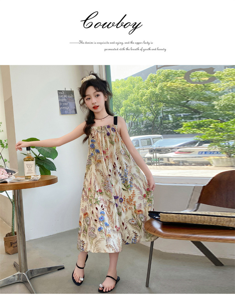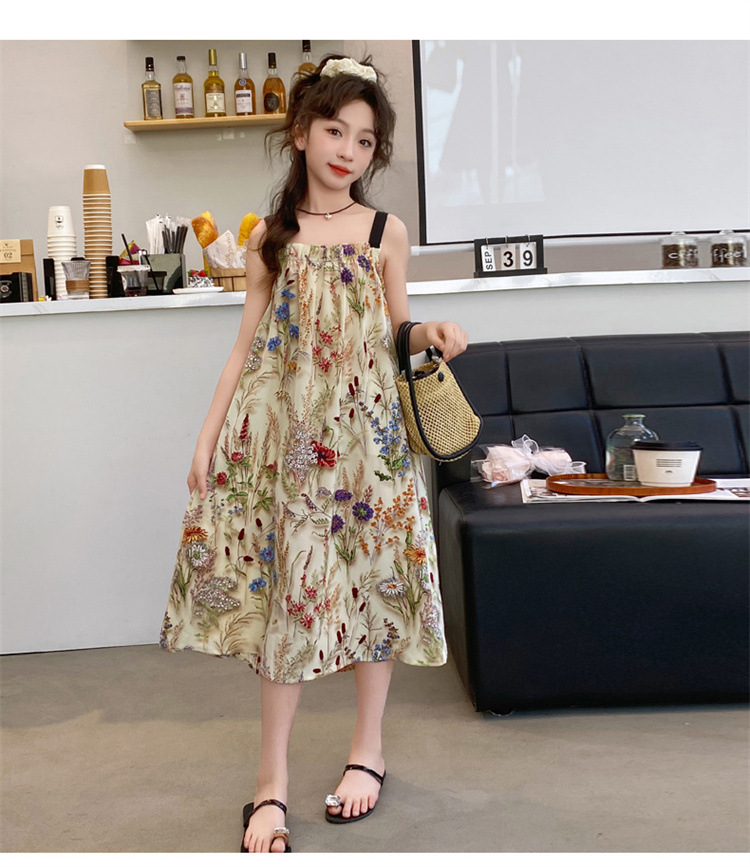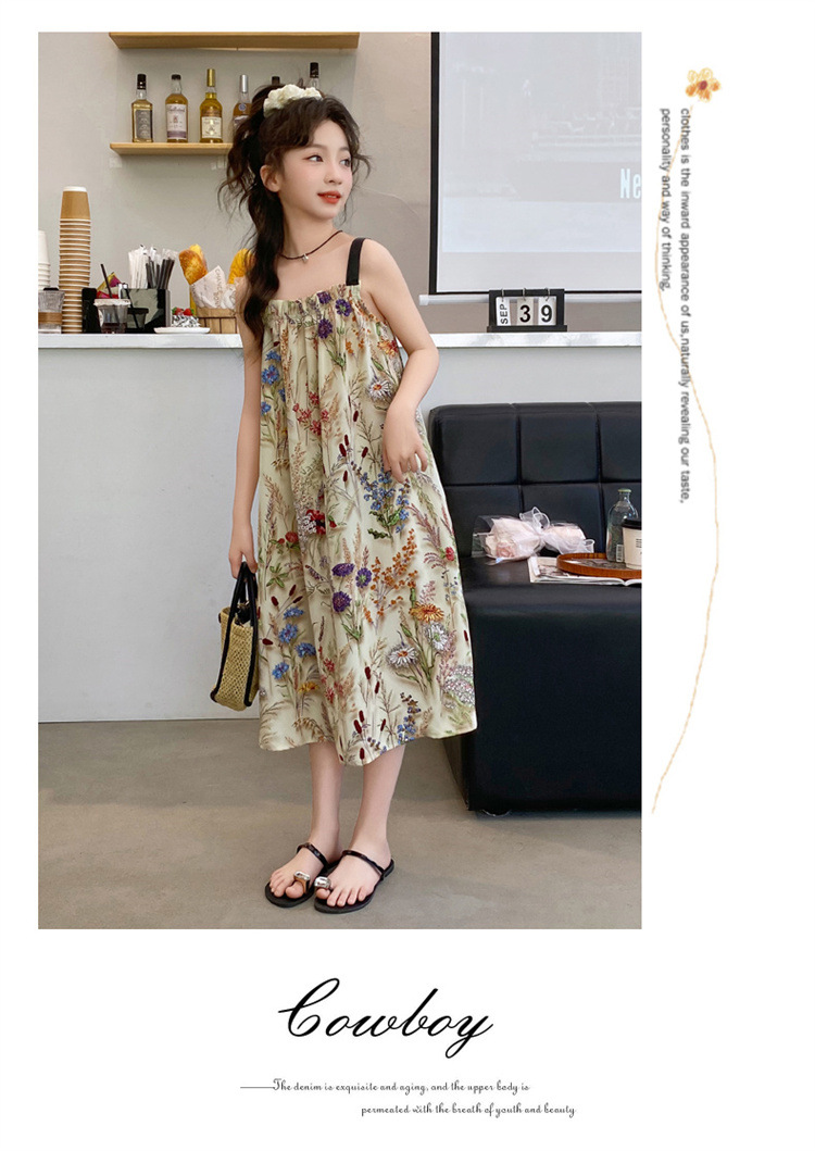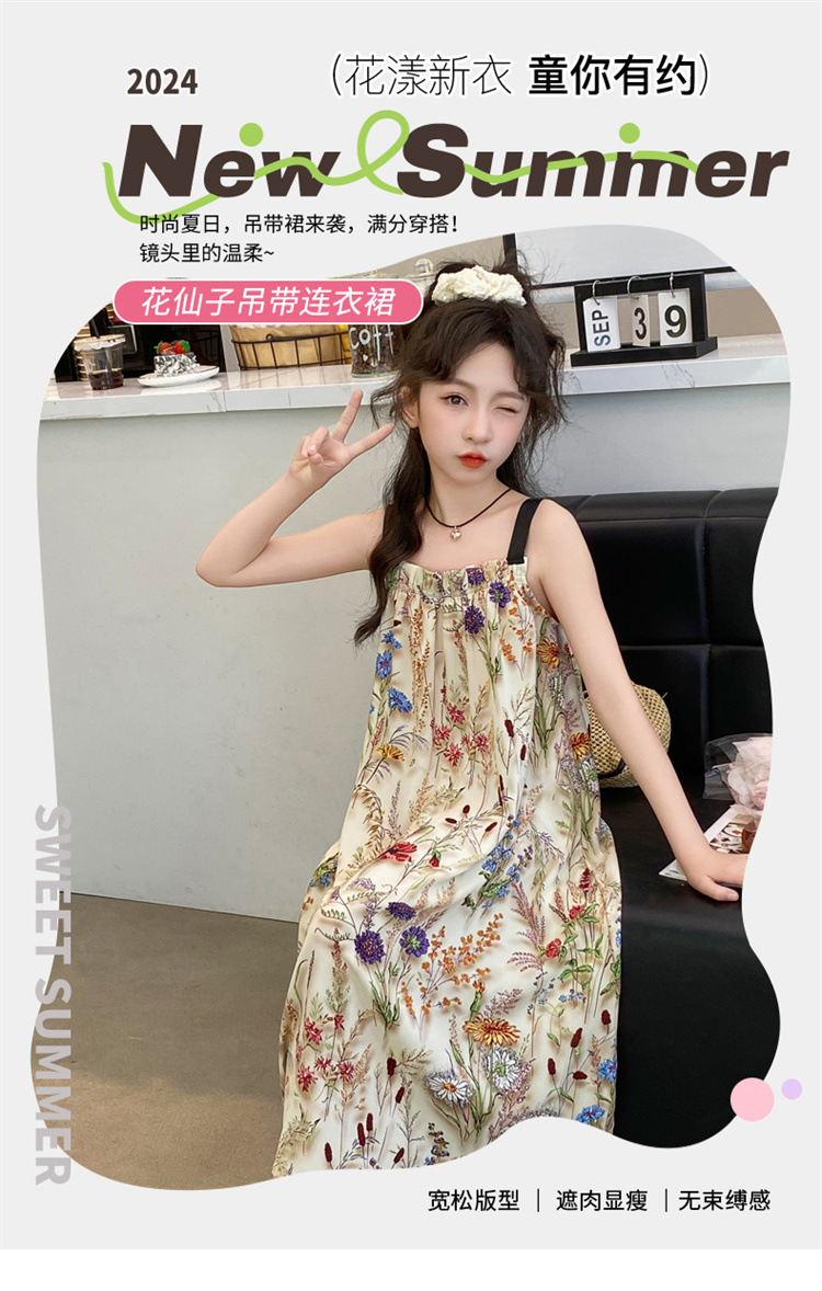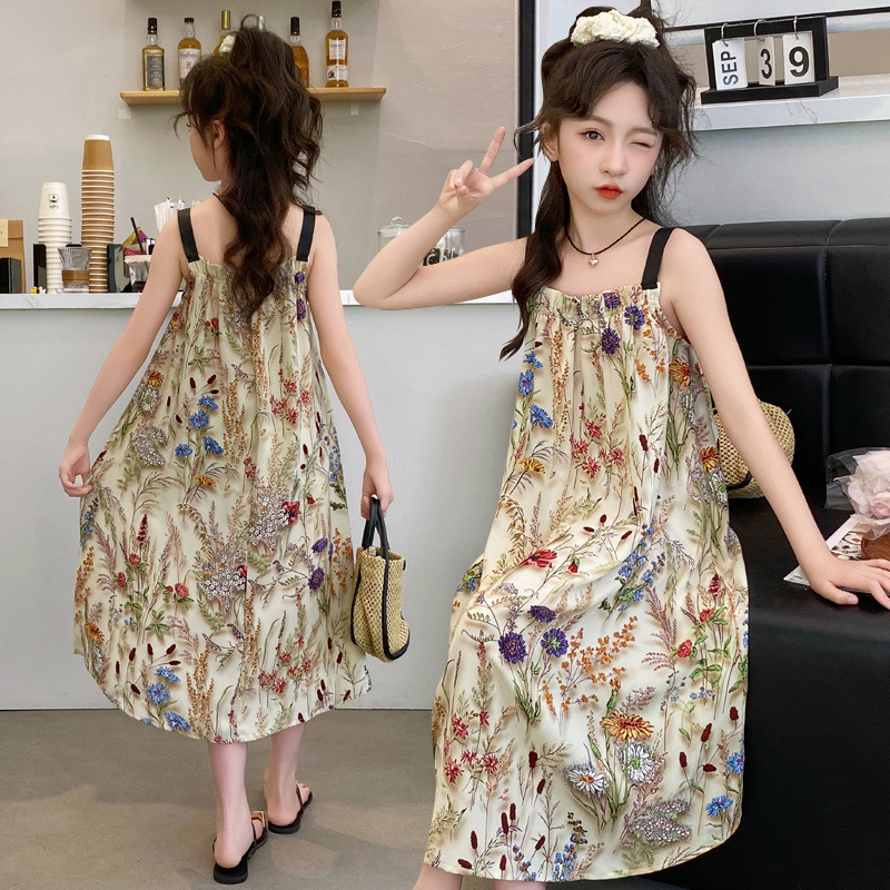 여자 여름 원피스 도매 새로운 한국 버전 2025 외국 스타일 어린이 온라인 인기 공주 원피스 꽃 고삐 원피스스토어 가기