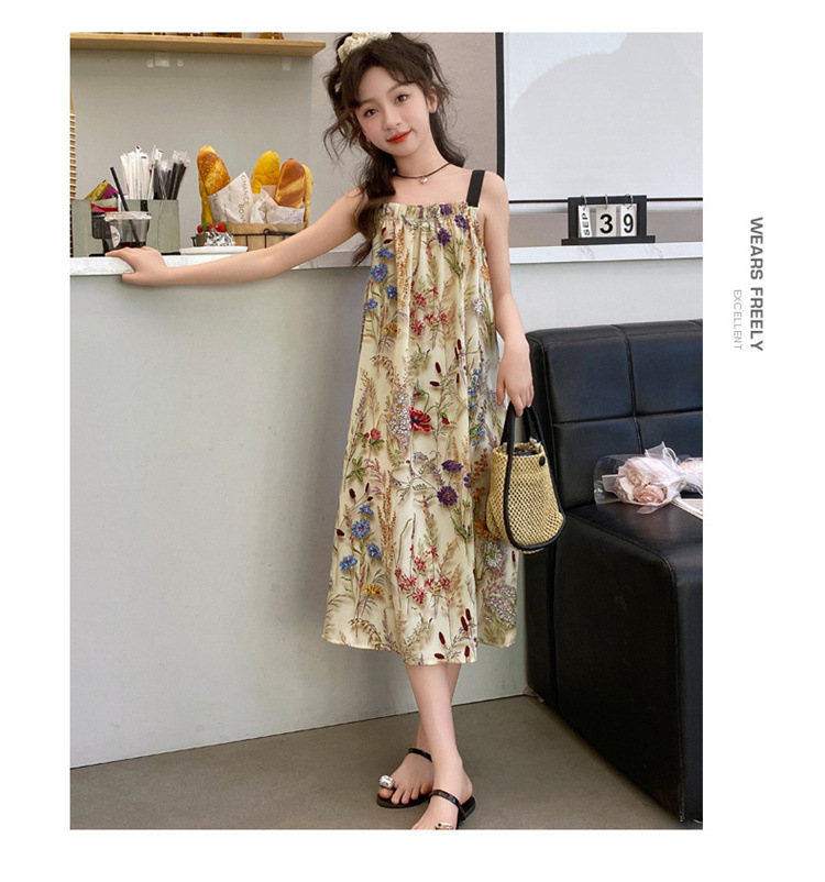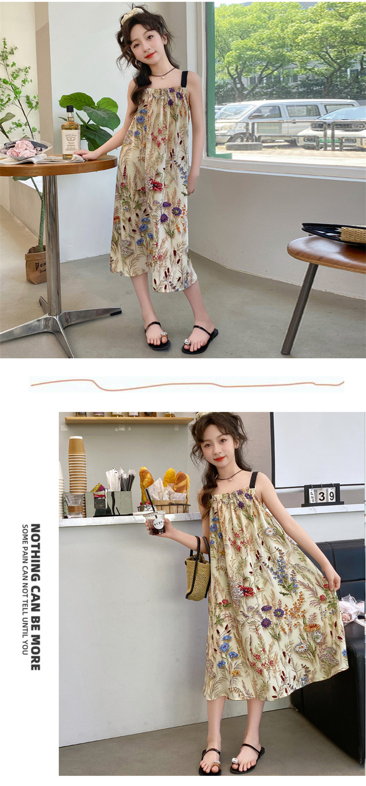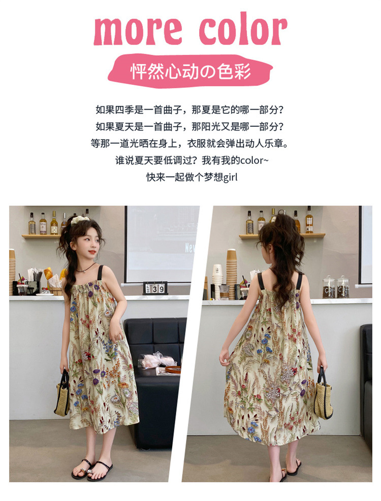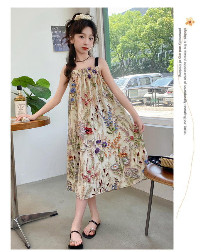 여자 여름 원피스 도매 새로운 한국 버전 2025 외국 스타일 어린이 온라인 인기 공주 원피스 꽃 고삐 원피스스토어 가기