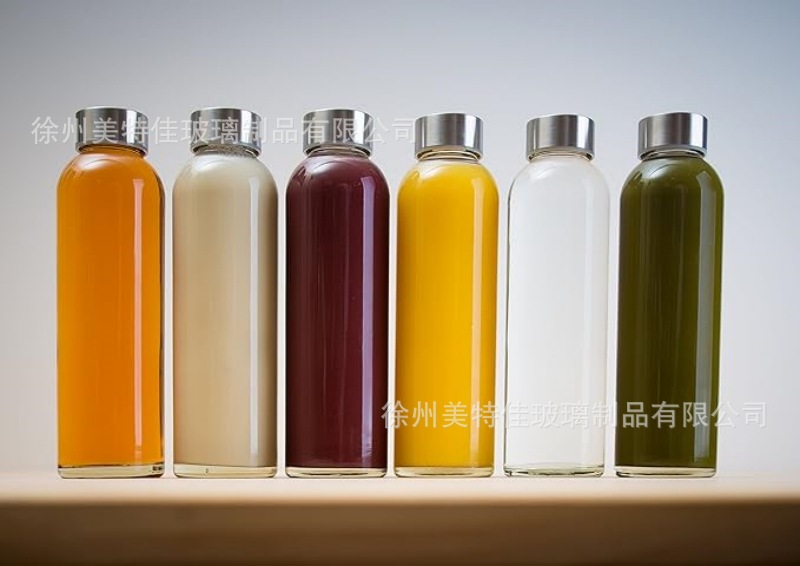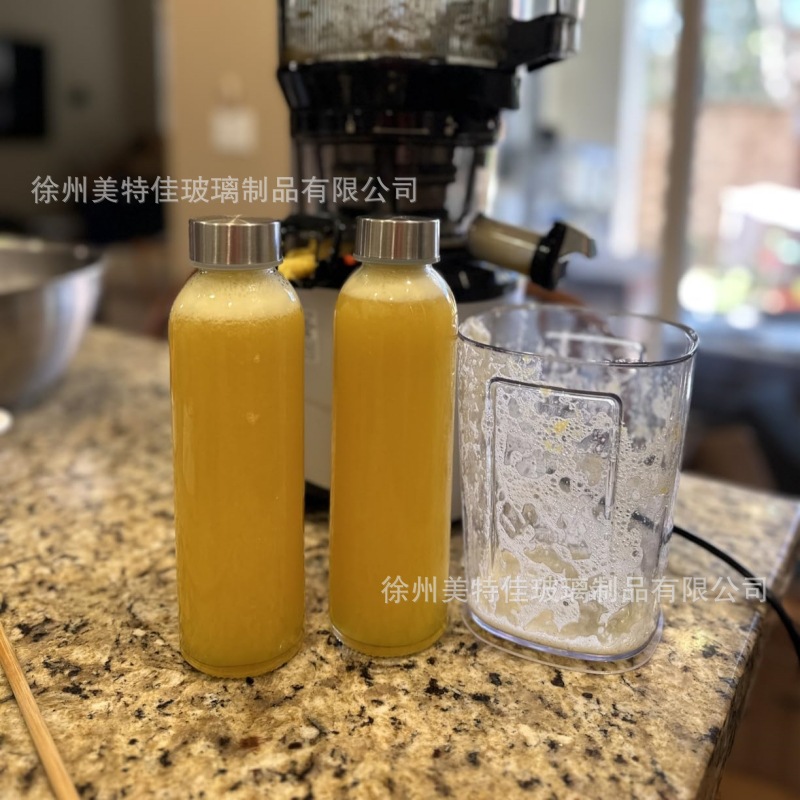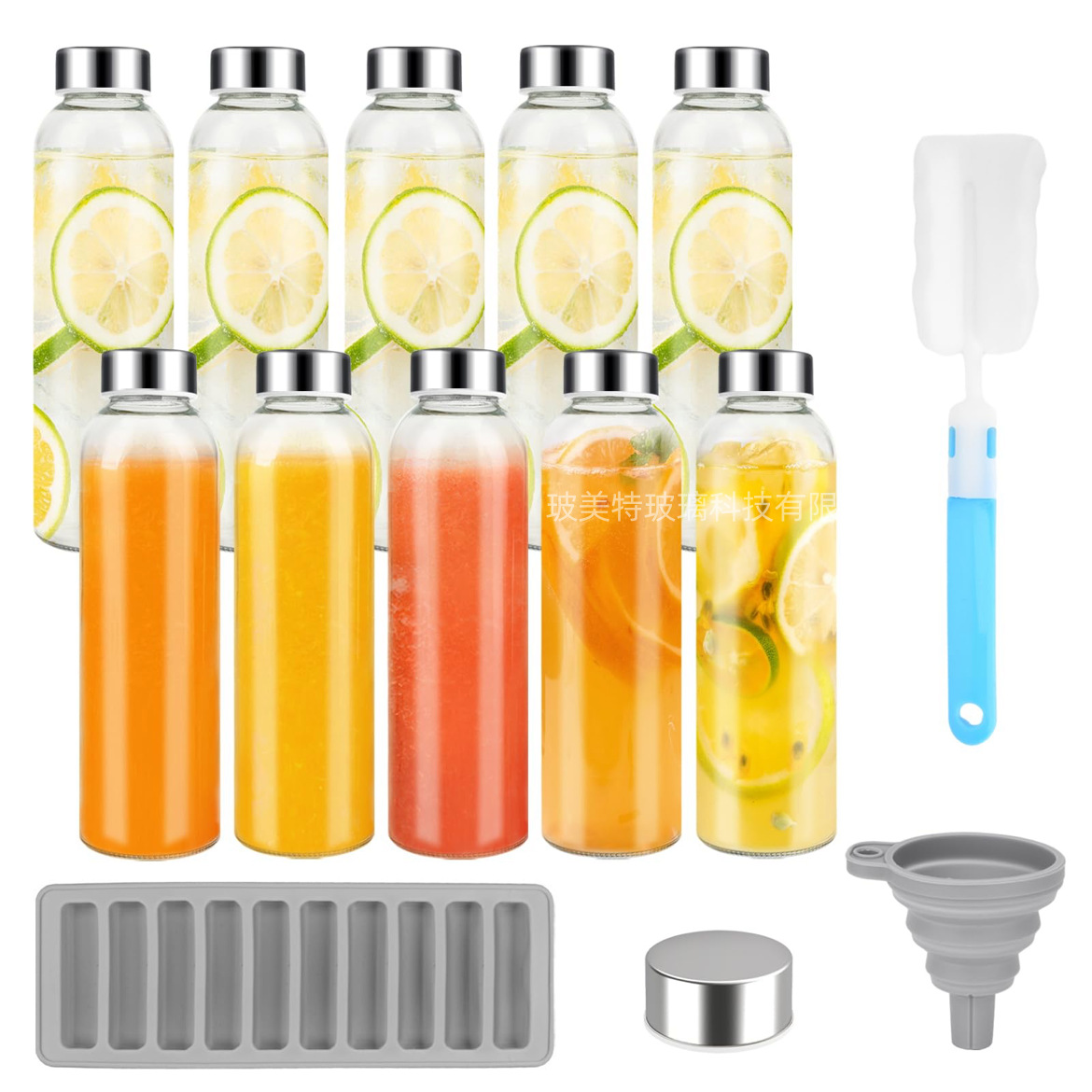 아마존 18 온스 물병 6 피스 세트 500ml 투명 유리 주스 병 음료 주스 추출 과일 차 컵 뚜껑 누출 방지스토어 가기