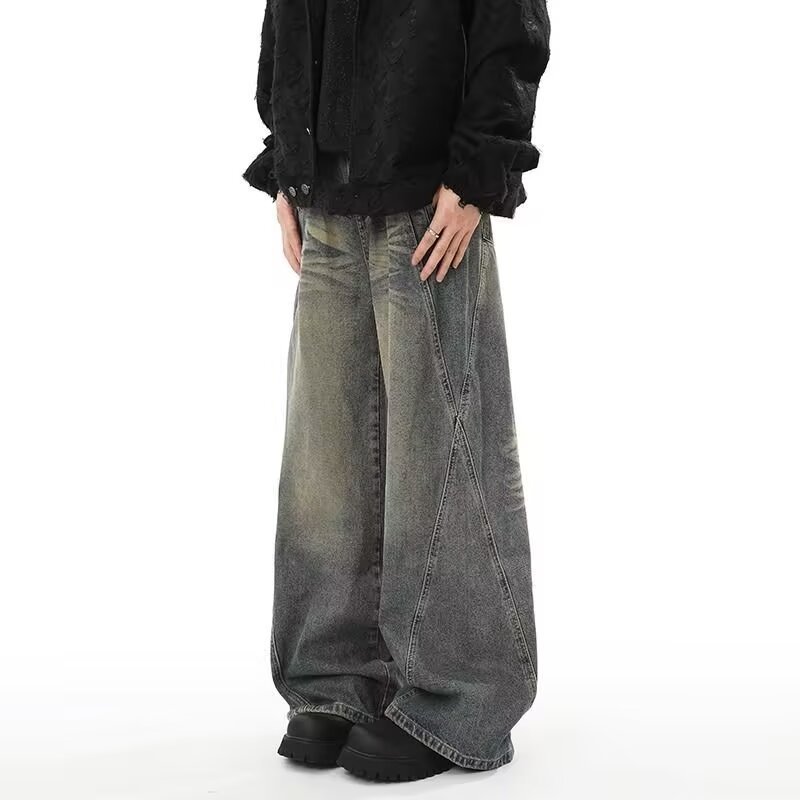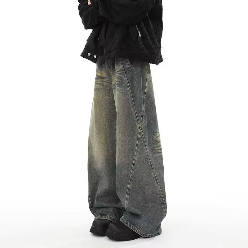 3 차원 컷 느슨한 Scimitar 청바지 남성 2025 년 봄과 가을 미국 스타일 복고풍 캐주얼 스키트 와이드 다리 바지