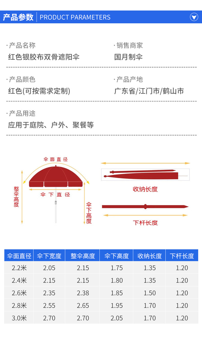 빨간 실버 테이프 두 배 뼈 대형 야외 햇빛 대형 우산 태양 우산 상업용 스톨 우산 공장 공급스토어 가기