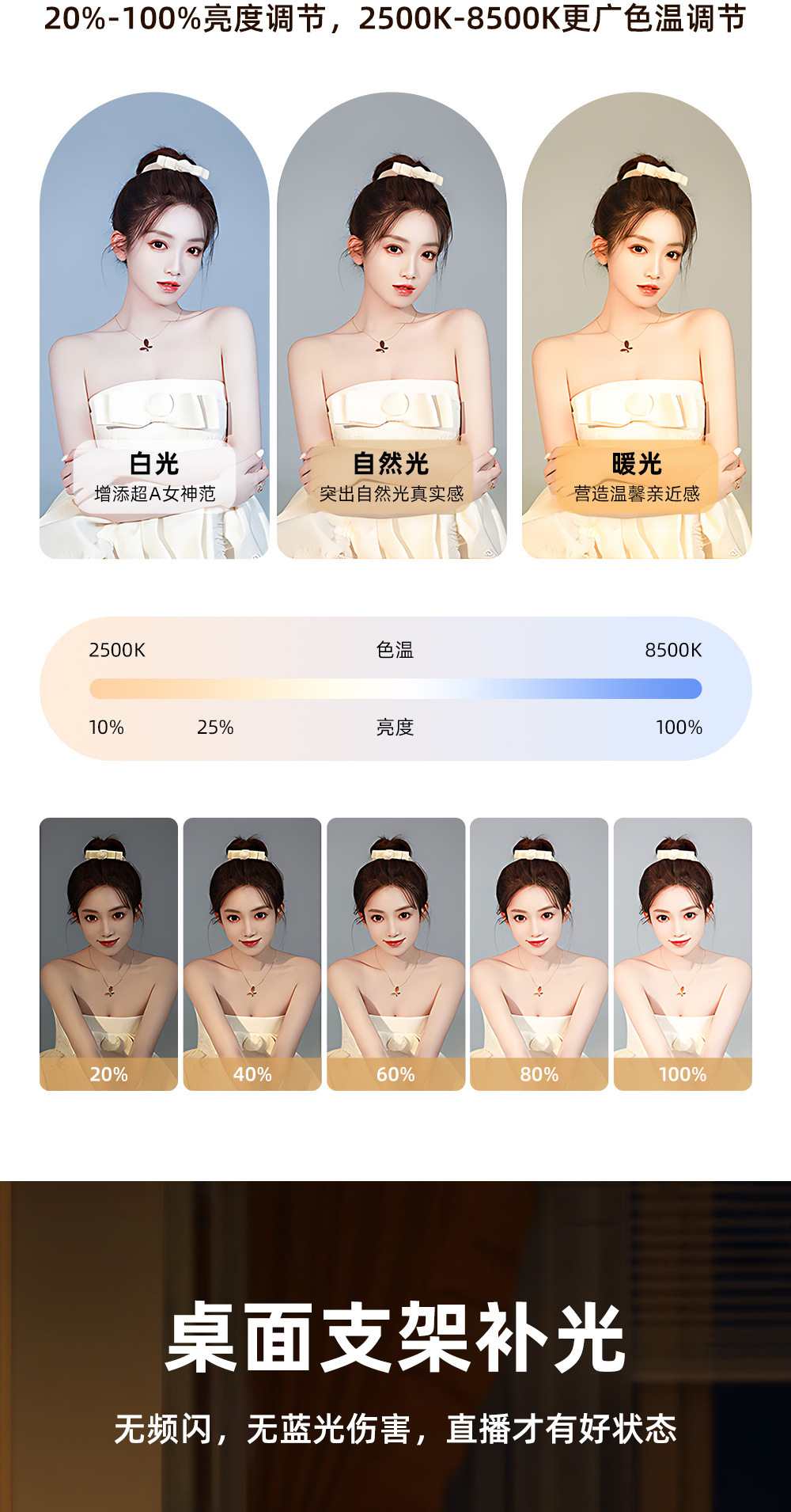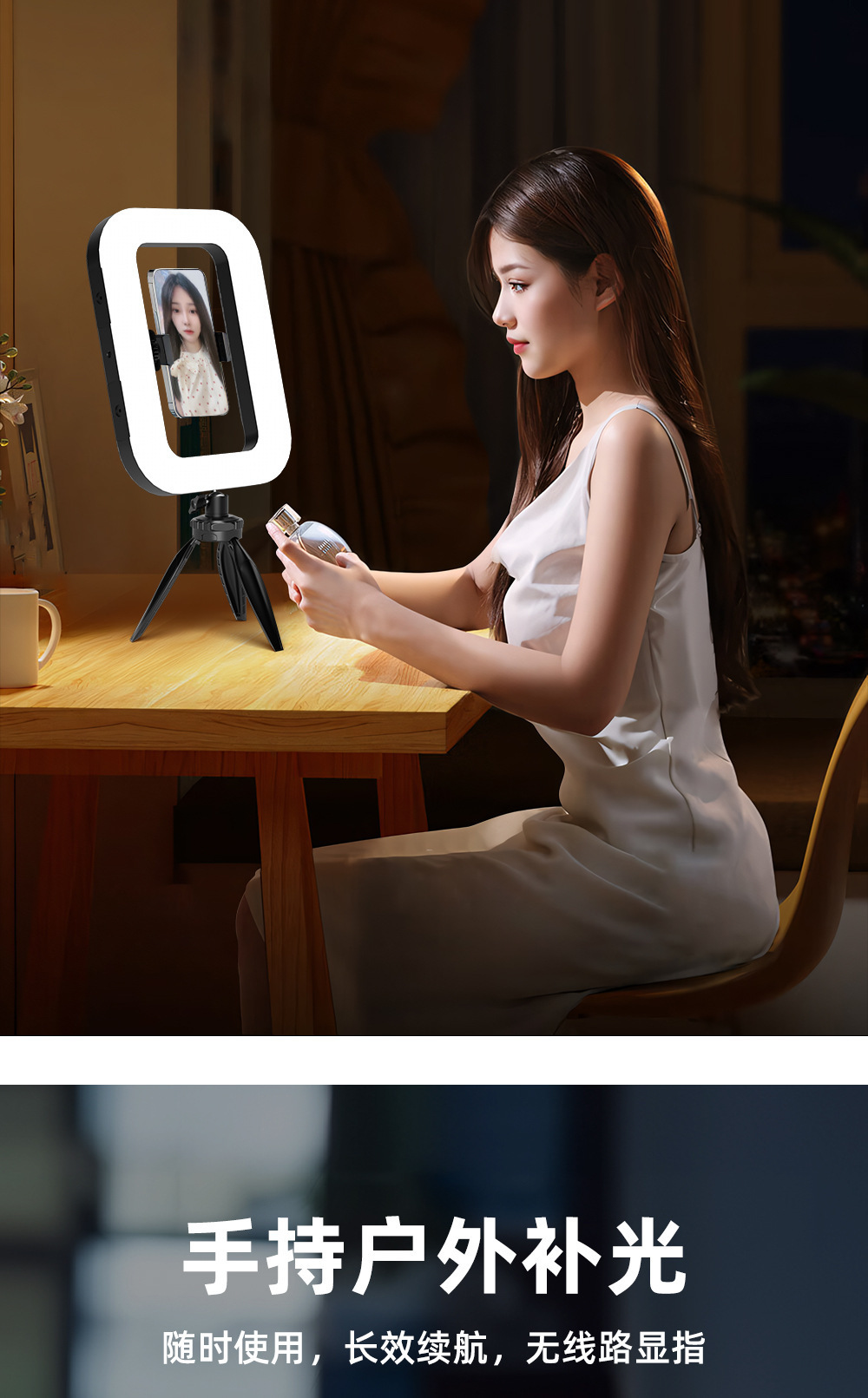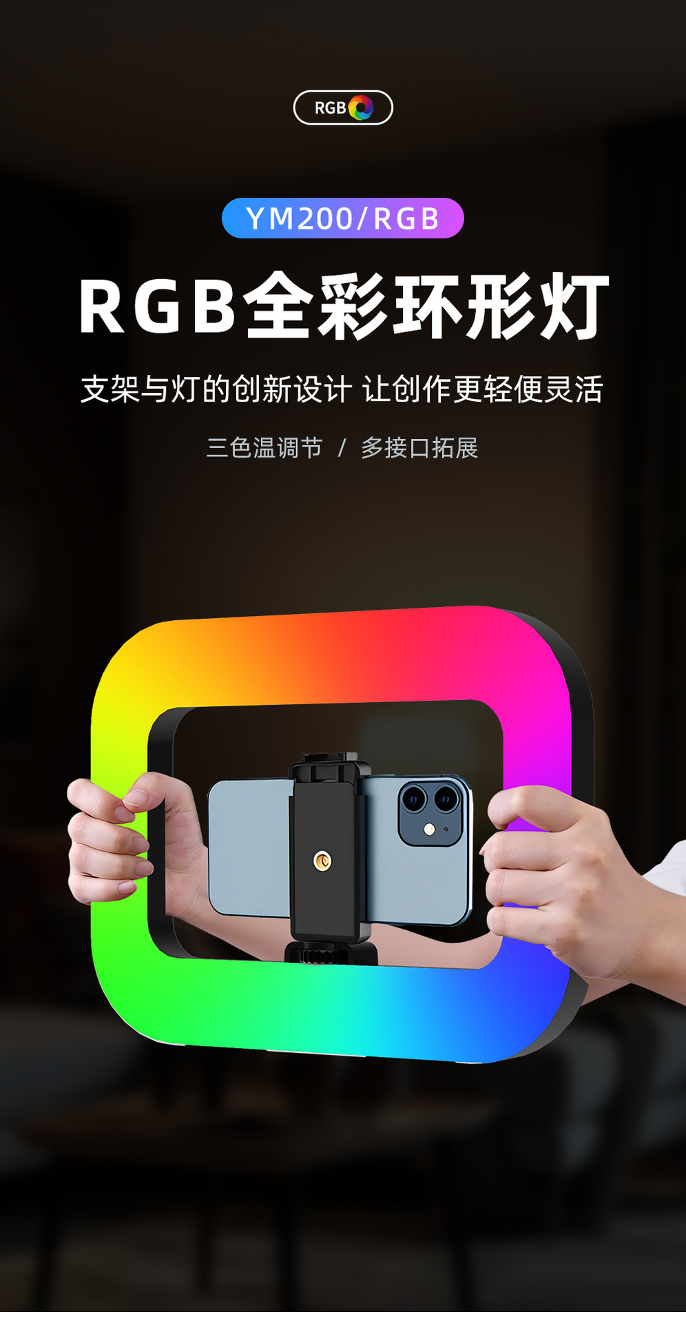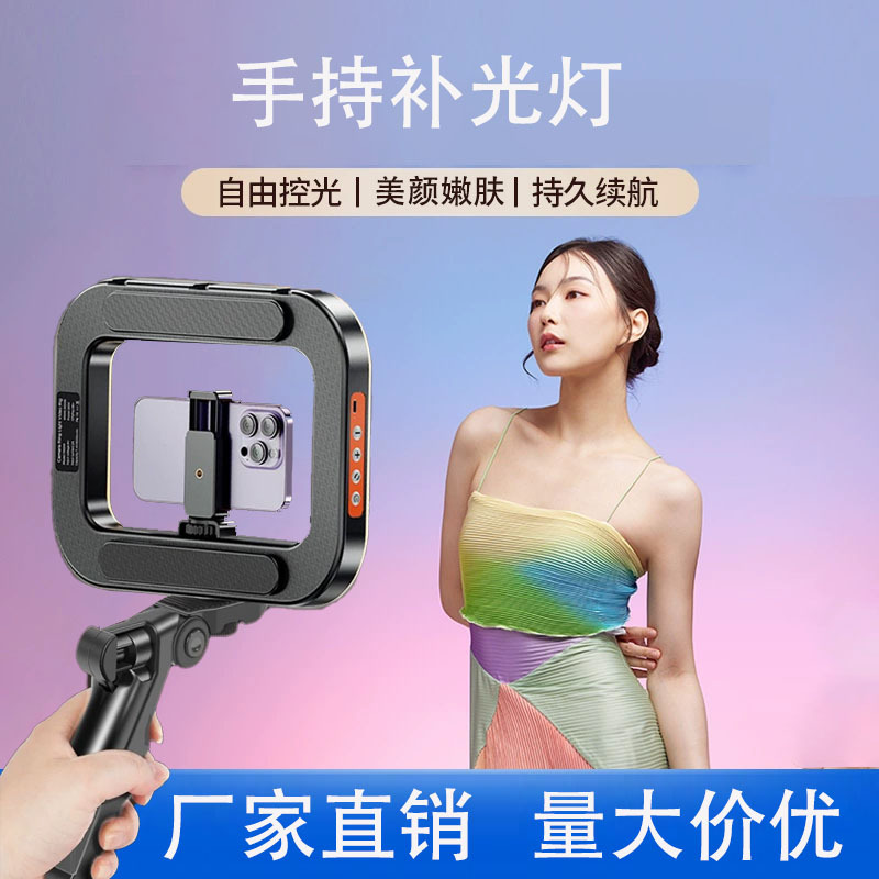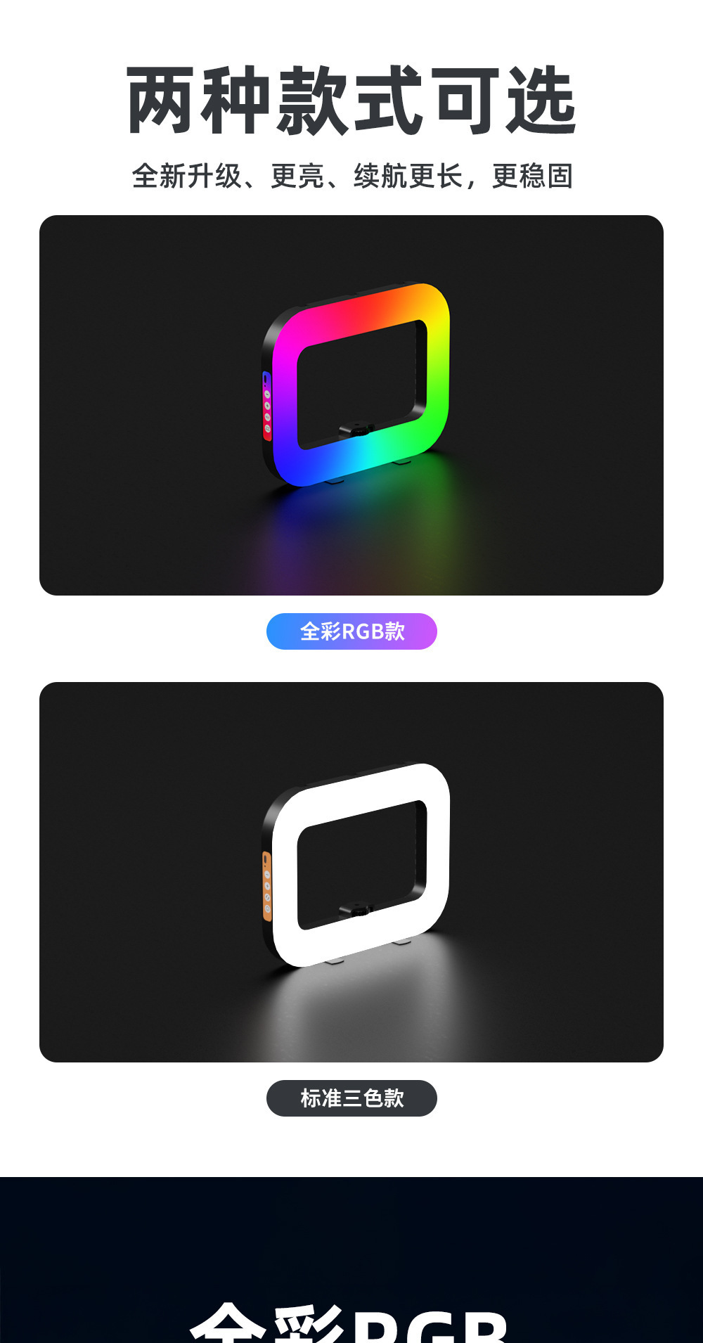 RGB 링 핸드 헬드 필 라이트 휴대용 휴대 전화 라이브 소프트 라이트 뷰티 사진 데스크탑 토끼 케이지 셀카 라이트