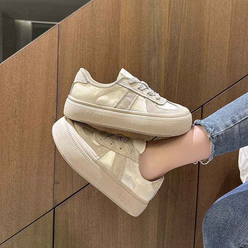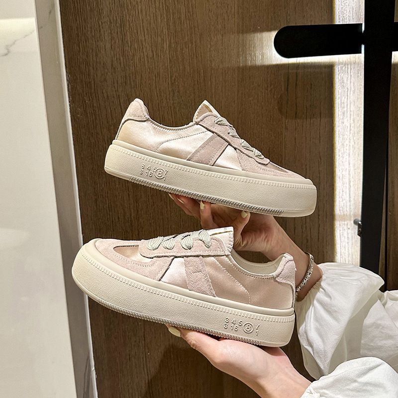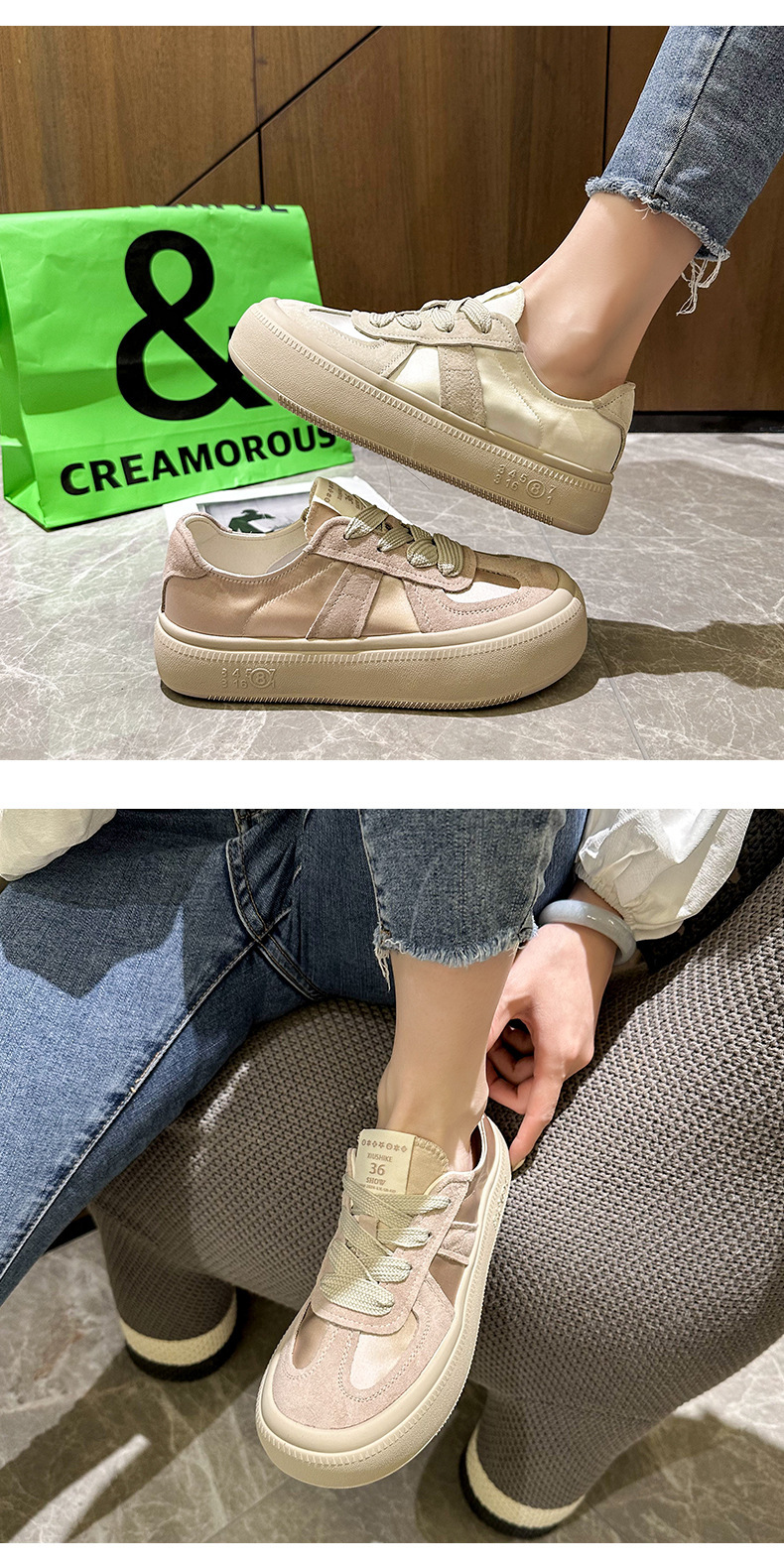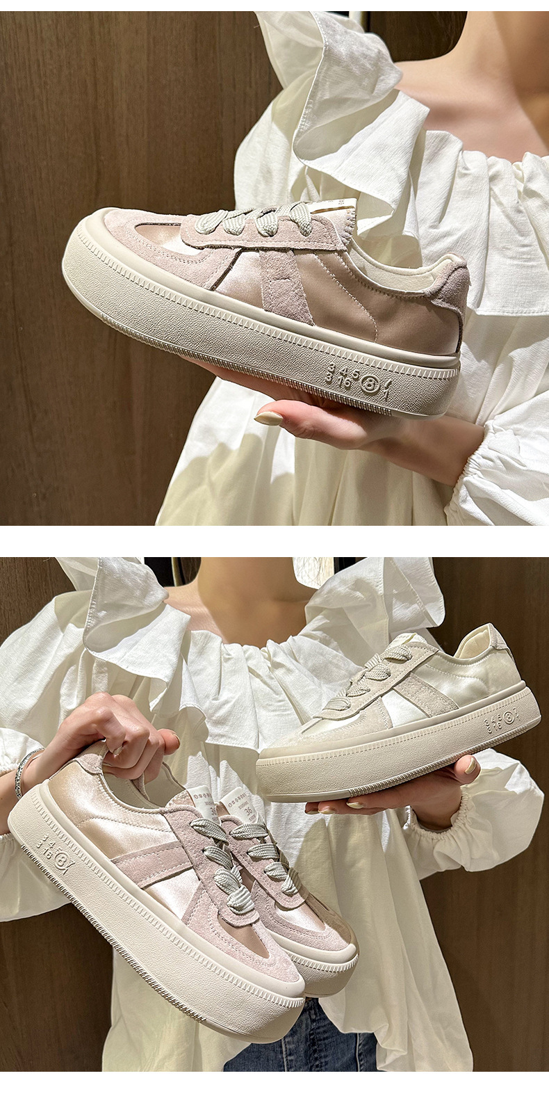 Desun 신발 여성 레트로 두꺼운 바닥 둥근 발가락 핑크 실크 새틴 통기성 올 매치 2024 여름 여성을위한 새로운 캐주얼 스니커즈