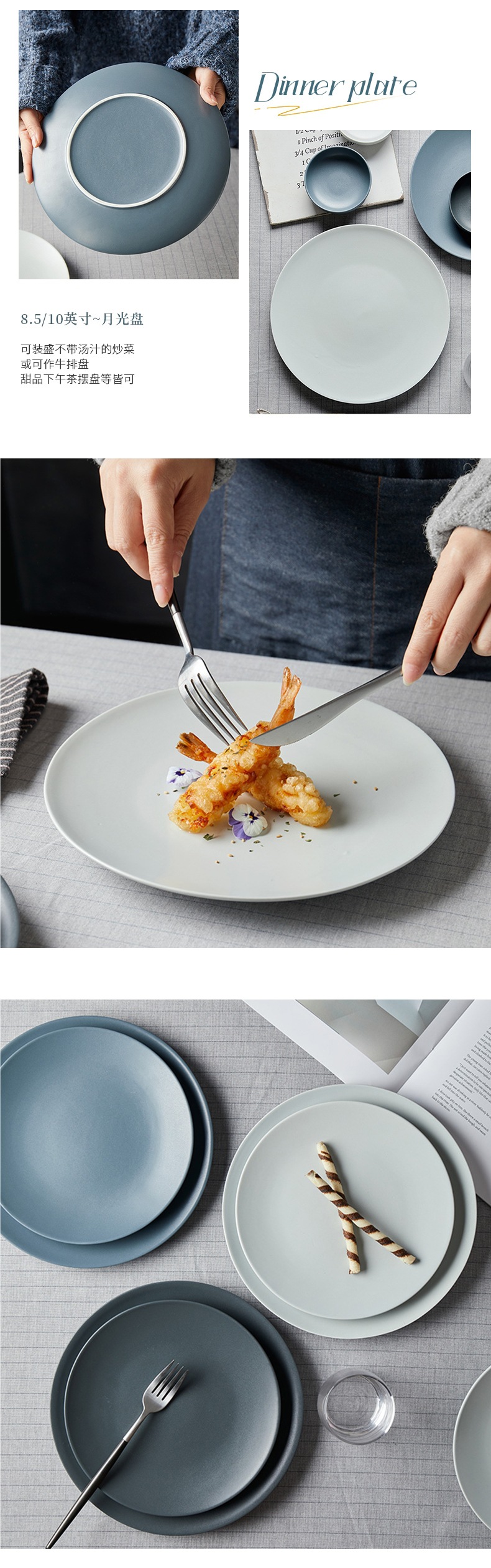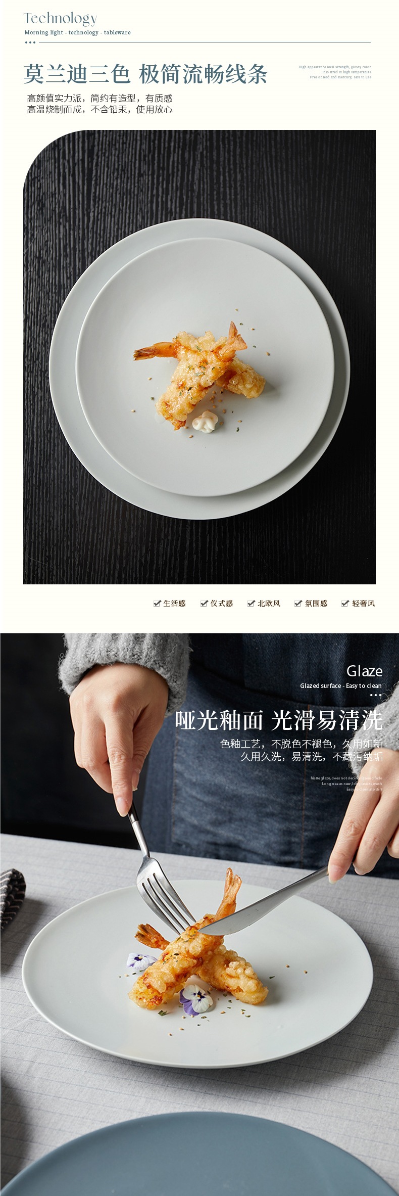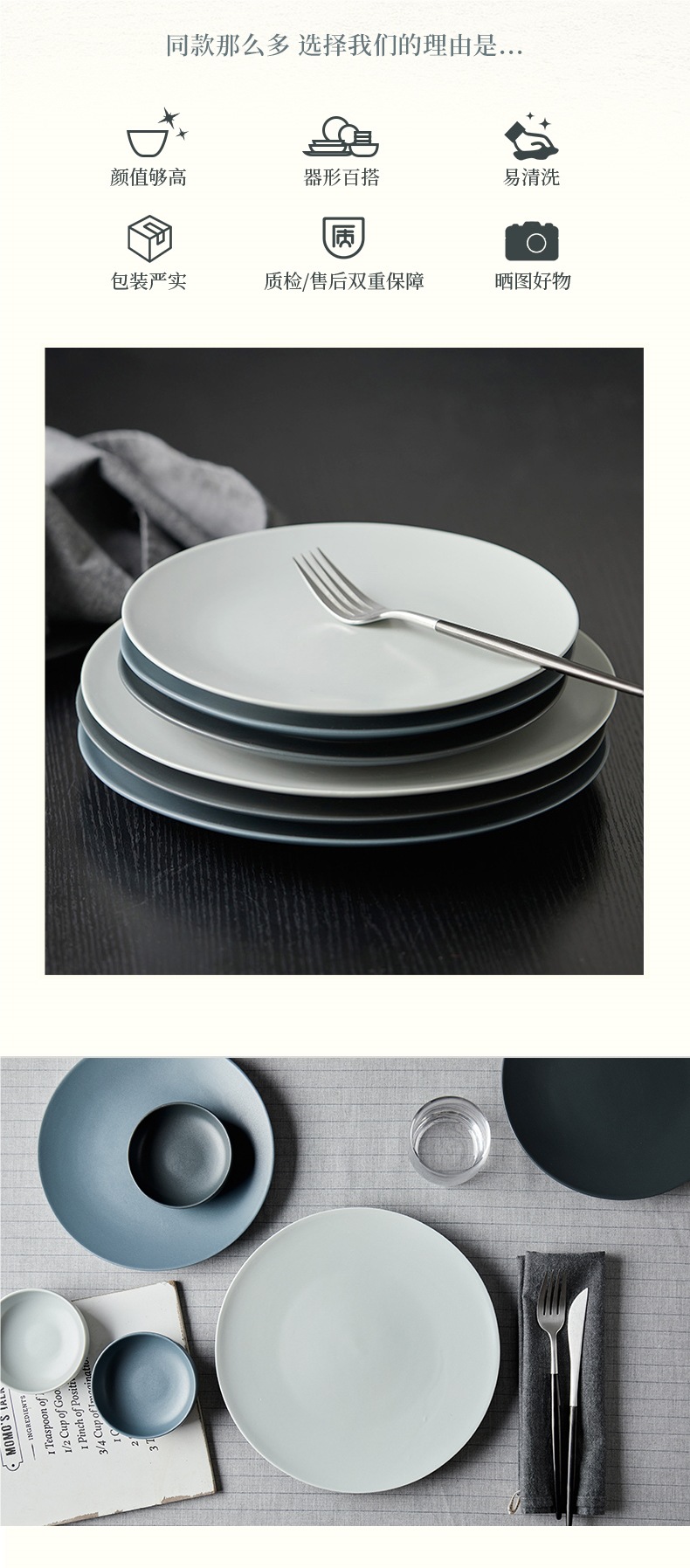 지우 세라믹 플랫 플레이트 얕은 플레이트 가정용 둥근 접시 빵 접시 스테이크 칼 접시 서양 음식 접시 세라믹 식기