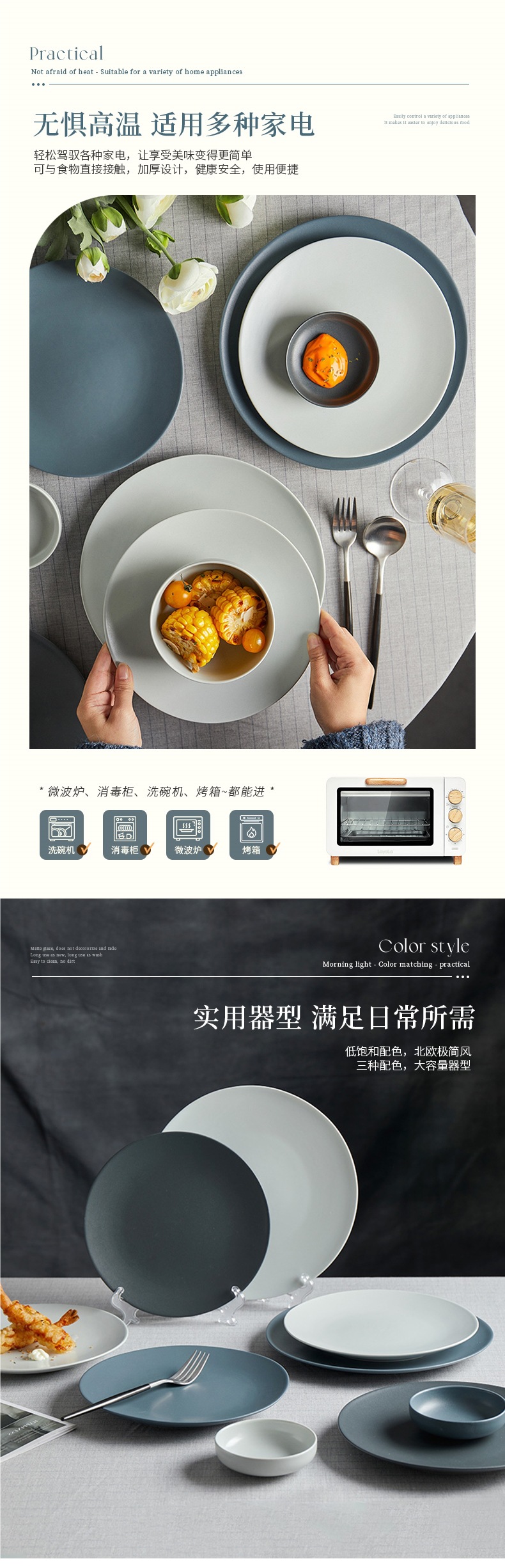 지우 세라믹 플랫 플레이트 얕은 플레이트 가정용 둥근 접시 빵 접시 스테이크 칼 접시 서양 음식 접시 세라믹 식기스토어 가기