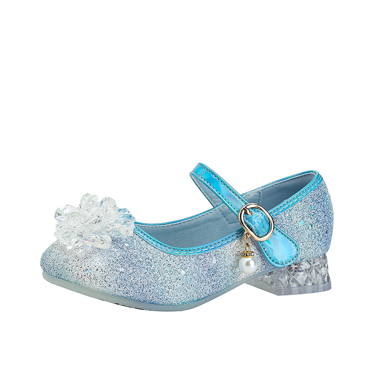 소녀 하이힐 2025 봄과 가을 새로운 크리스탈 신발 웨딩 파티 하이힐 꽃 들러리 어린이 신발스토어 가기