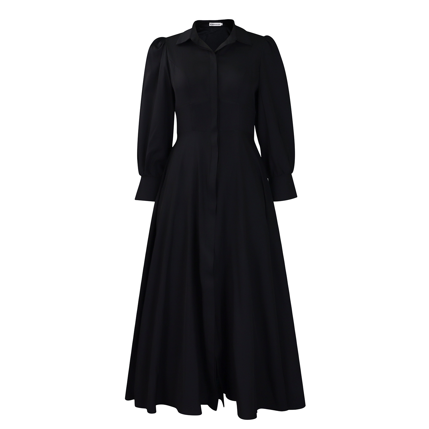 D570 국경 여성 우아한 긴팔 큰 소매 셔츠 드레스 패션 단색 중간 길이의 아프리카 원피스스토어 가기