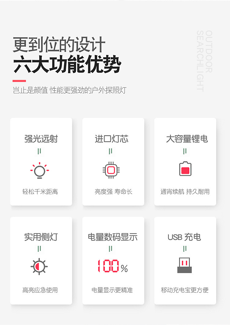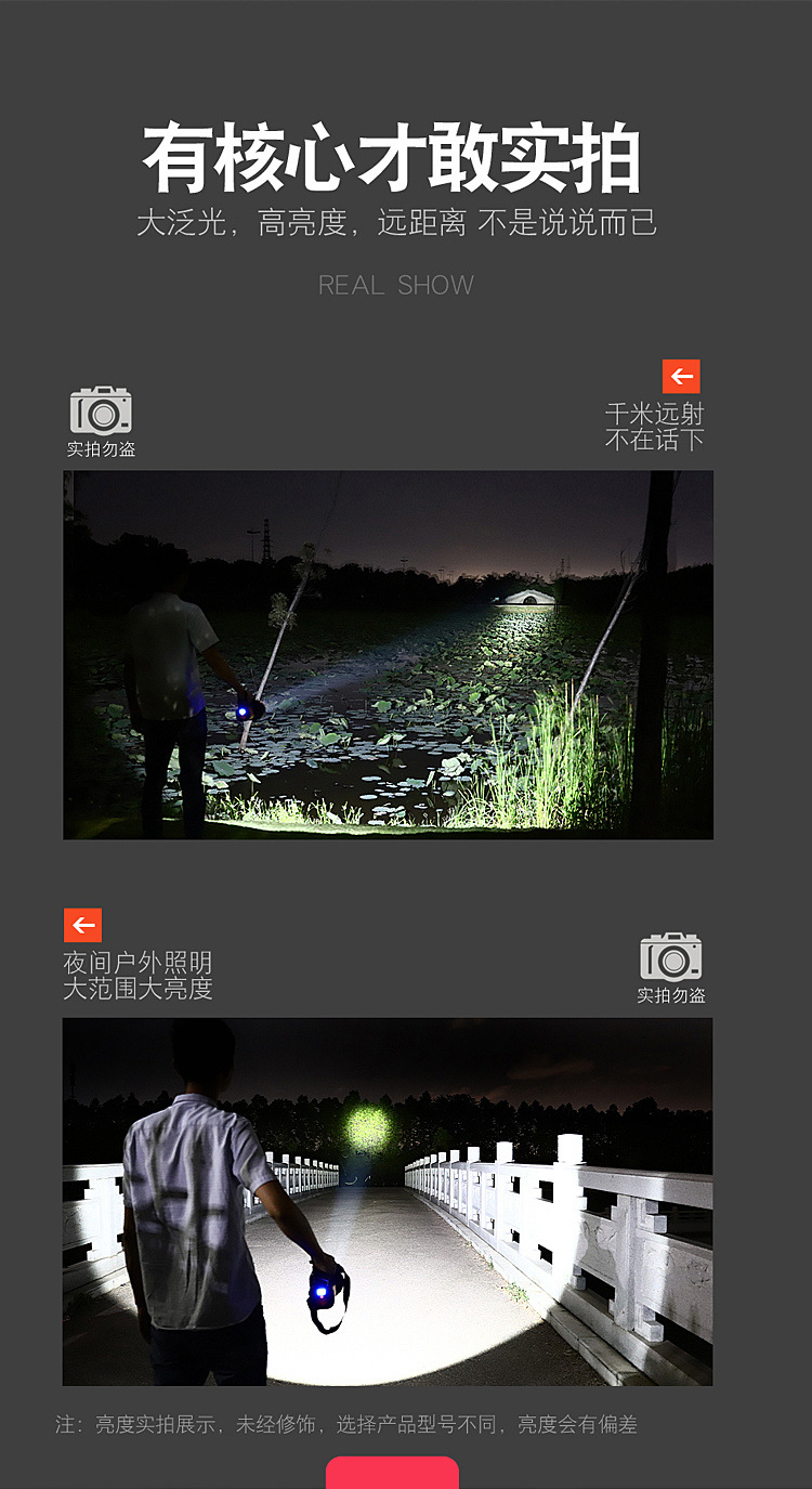 • 측면 조명 + 경고등 + 디지털 디스플레이 + 보조 배터리 기능 포함 - T6 심지 유형 8000 - 강한 빛 8 약한 빛 50