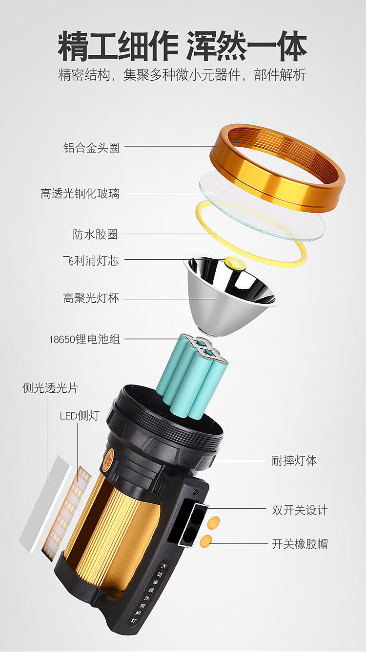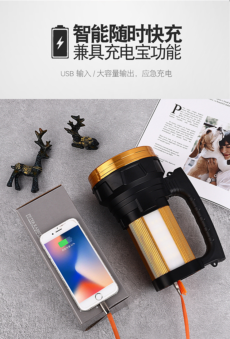 손전등 충전식 가정용 고출력 휴대용 램프 낚시 램프 슈퍼 밝은 장거리 야외 탐조등스토어 가기